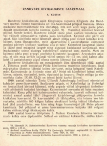 Kustin, A. (1962). Randvere kivikalmistu Saaremaal. – Muistsed kalmed ja aarded. Arheoloogiline kogumik II. (toim.) Harri Moora.