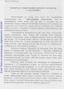 Lõugas, V. (1995). Saaremaa väikeselohulised kultusekivid I (kataloog). Saaremaa Muuseum, kaheaastaraamat 1993–1994 (62−88). Kuressaare: Saaremaa Muuseum.