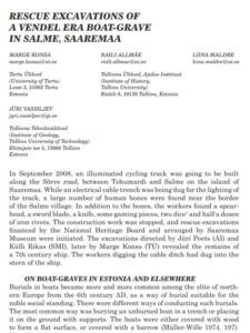 Konsa, M.; Allmäe, R.; Maldre, L.; Vassiljev, J. (2009). Rescue excavations of a Vendel era boat-grave in Salme, Saaremaa. Arheoloogilised välitööd Eestis = Archeological fieldwork in Estonia, 2008, 53−64.
