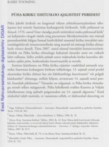 Tooming, K. (2009). Püha kiriku ehitusloo ajalistest piiridest. Saaremaa Muuseum, kaheaastaraamat 2007–2008 (61−68). Kuressaare: Saaremaa Muuseum.