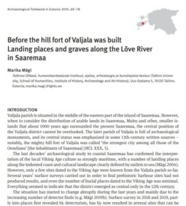 Mägi, M. (2020). Before the hill fort of Valjala was built. Landing places and graves along the Lõve River in Saaremaa. Arheoloogilised välitööd Eestis = Archeological fieldwork in Estonia, 2019, 69−78.