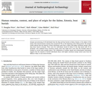 Price, D. T.; Peets, J.; Allmäe, R.; Maldre, L.; Price, N. (2020). Human remains, context, and place of origin for the Salme, Estonia, boat burials. Journal of Anthropological Archaeology, 58. DOI: 10.1016/j.jaa.2020.101149.