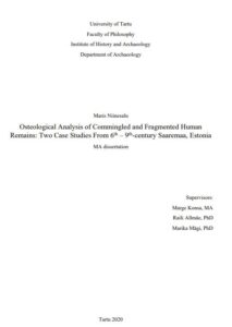 Niinesalu, M. (2020). Osteological Analysis of Commingled and Fragmented Human Remains: Two Case Studies From 6th – 9th-century Saaremaa, Estonia (Segatud ja fragmentaarsete luude osteoloogiline analüüs: kaks juhtumuuringut 6.-9. sajandi Saaremaalt). Marge Konsa; Marika Mägi; Raili Allmäe (juh). Tartu Ülikool, Humanitaarteaduste ja kunstide valdkond, ajaloo ja arheoloogia instituut.