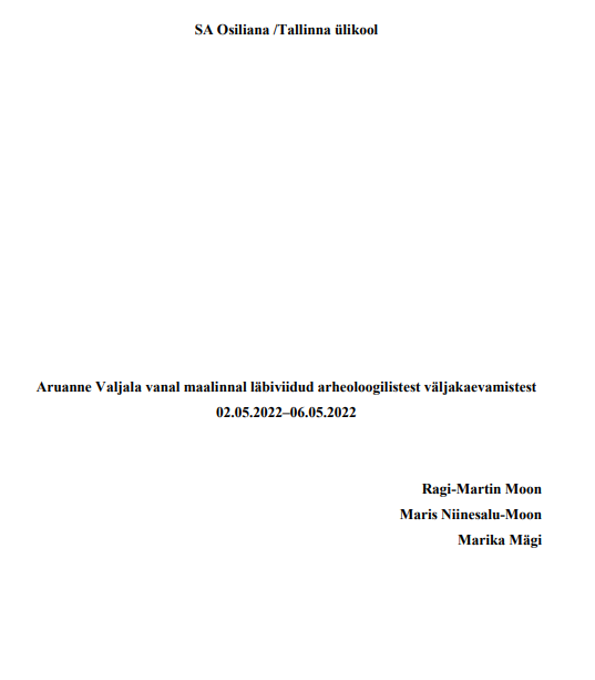 Moon, R-M.; Moon-Niinesalu, M.; Mägi, M. (2022). Aruanne Valjala vanal maalinnal läbiviidud arheoloogilistest väljakaevamistest 02.05.2022–06.05.2022. SA Osiliana/Tallinna Ülikool.