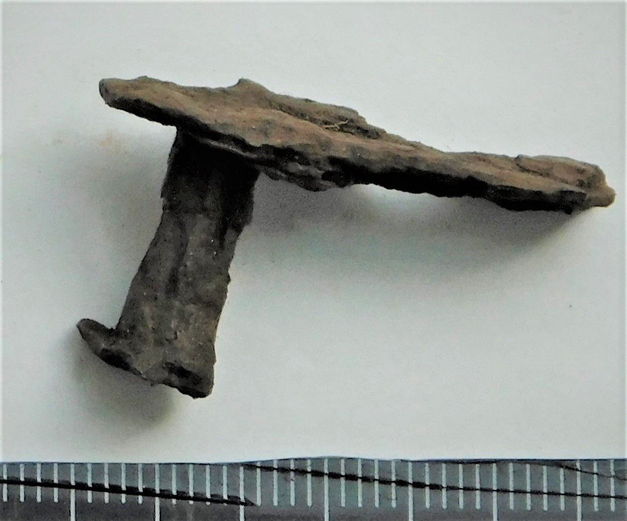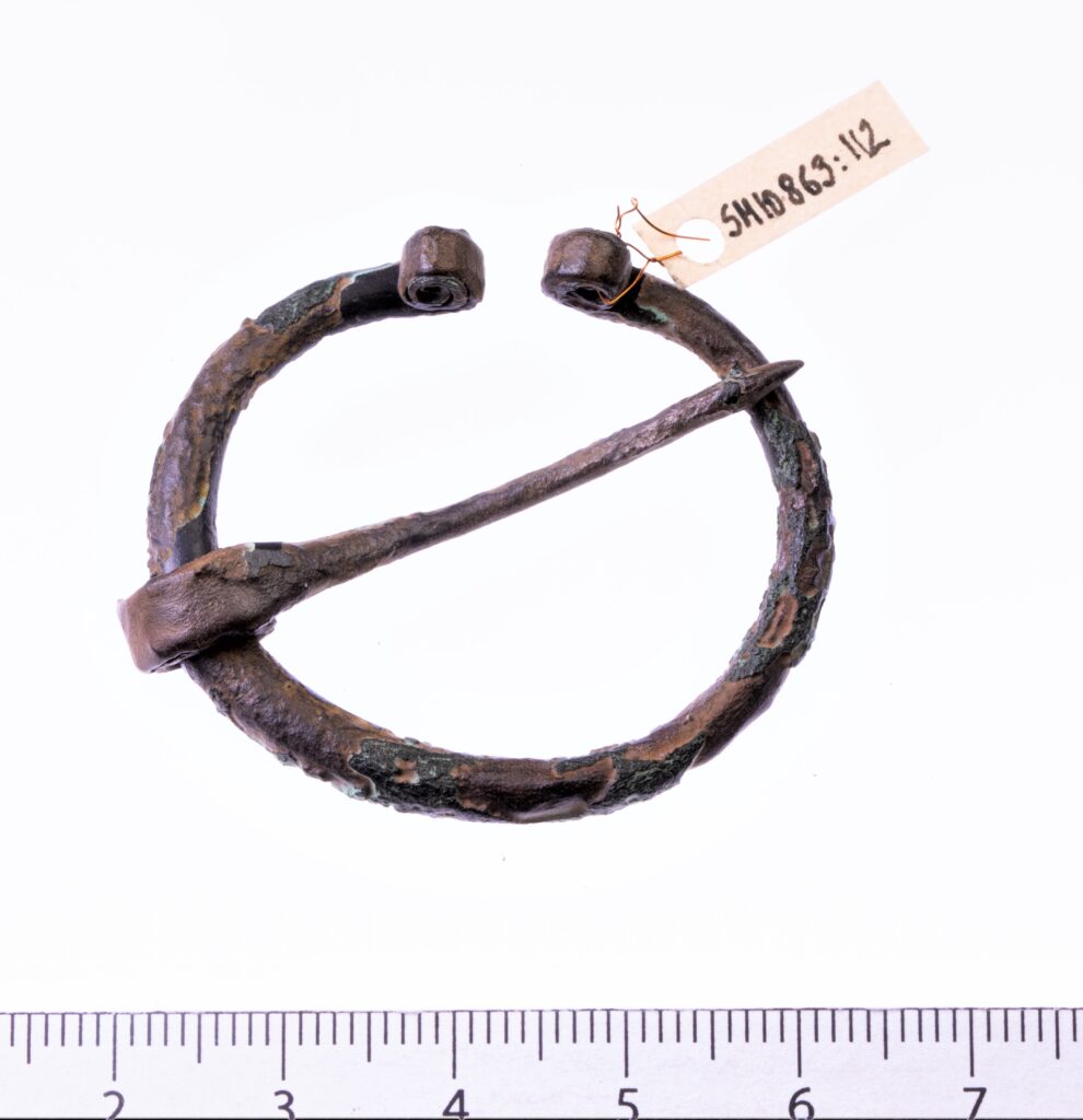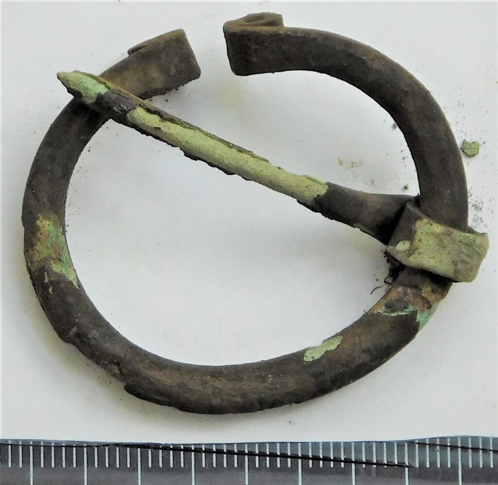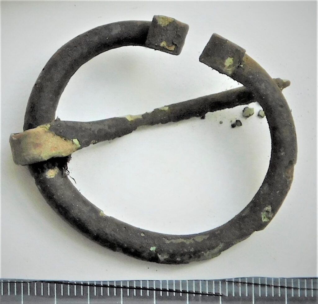 Hoburaudsõlg, rullotstega, ristlõige rombjas, nõel kitsakannaline, vasesulam.