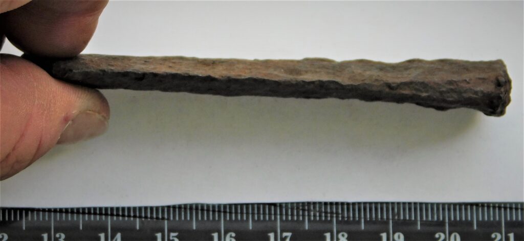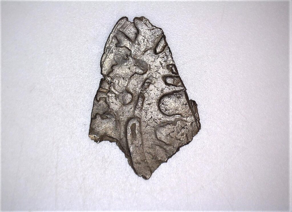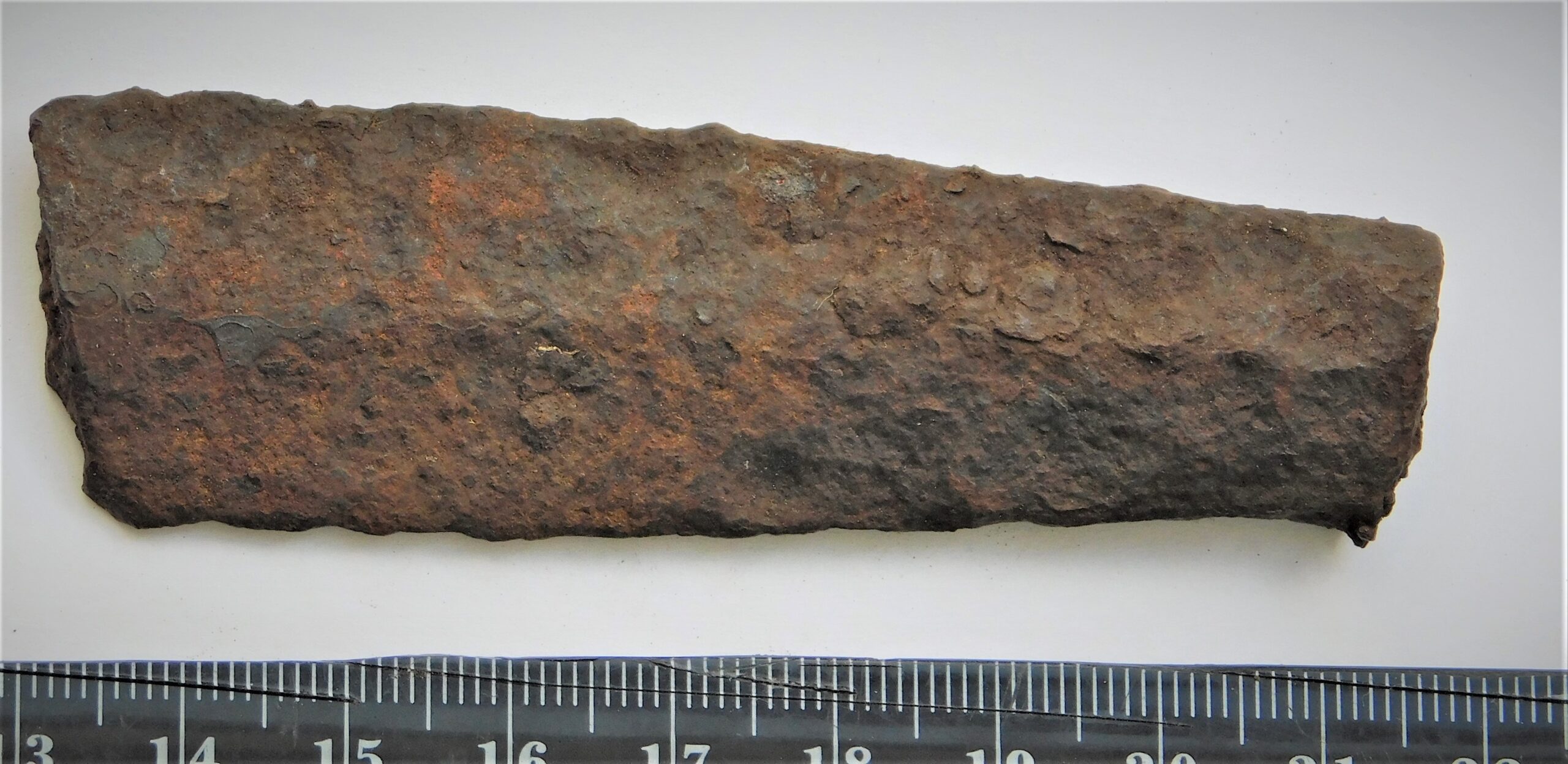 Odaotsa lehe katke, raud. Arvatavalt E-tüüpi odaotsast, üleminekukohalt putkele. Lehe ristlõige lame romb.