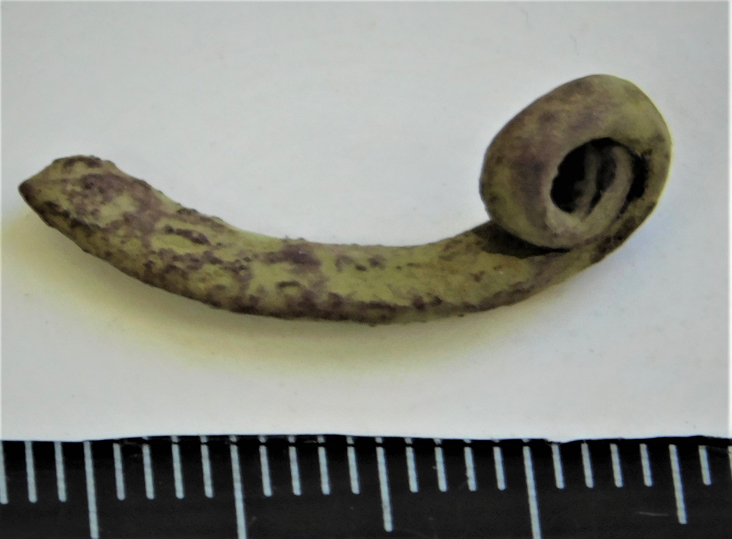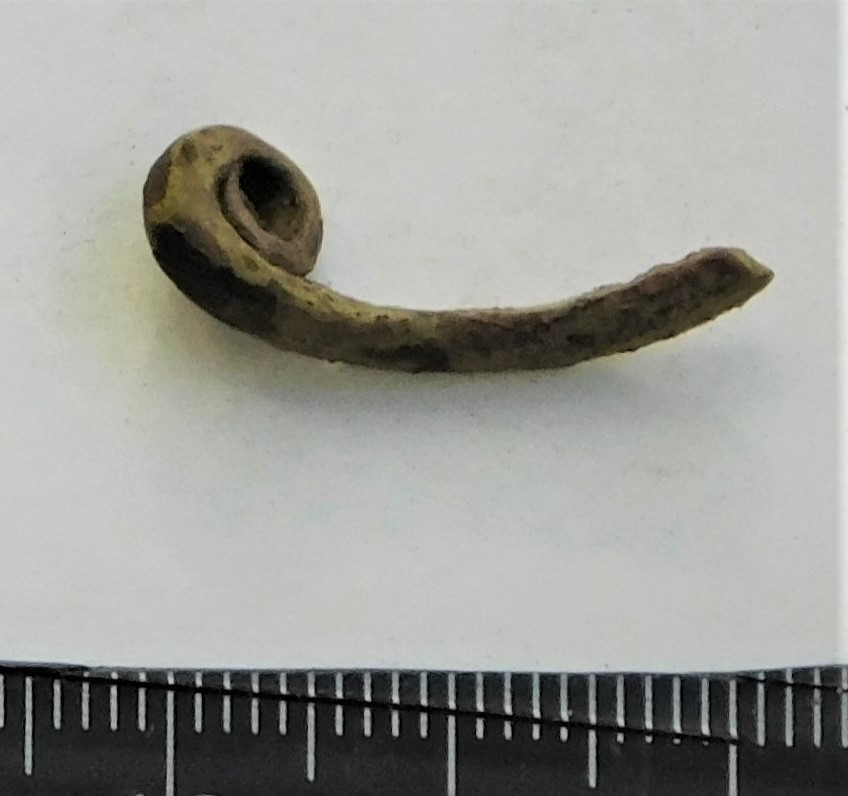 Hoburaudsõle nupp, lühike kitsas rullots, vasesulam. Sellised sõled olid balti aladel levinud pikema aja vältel 8.–14. sajandil (Vaska 2017, 26; 2019, 201). Otsa kuju järgi otsustades võiks kuuluda 8.-9. sajandisse (Mägi-Lõugas 1994).