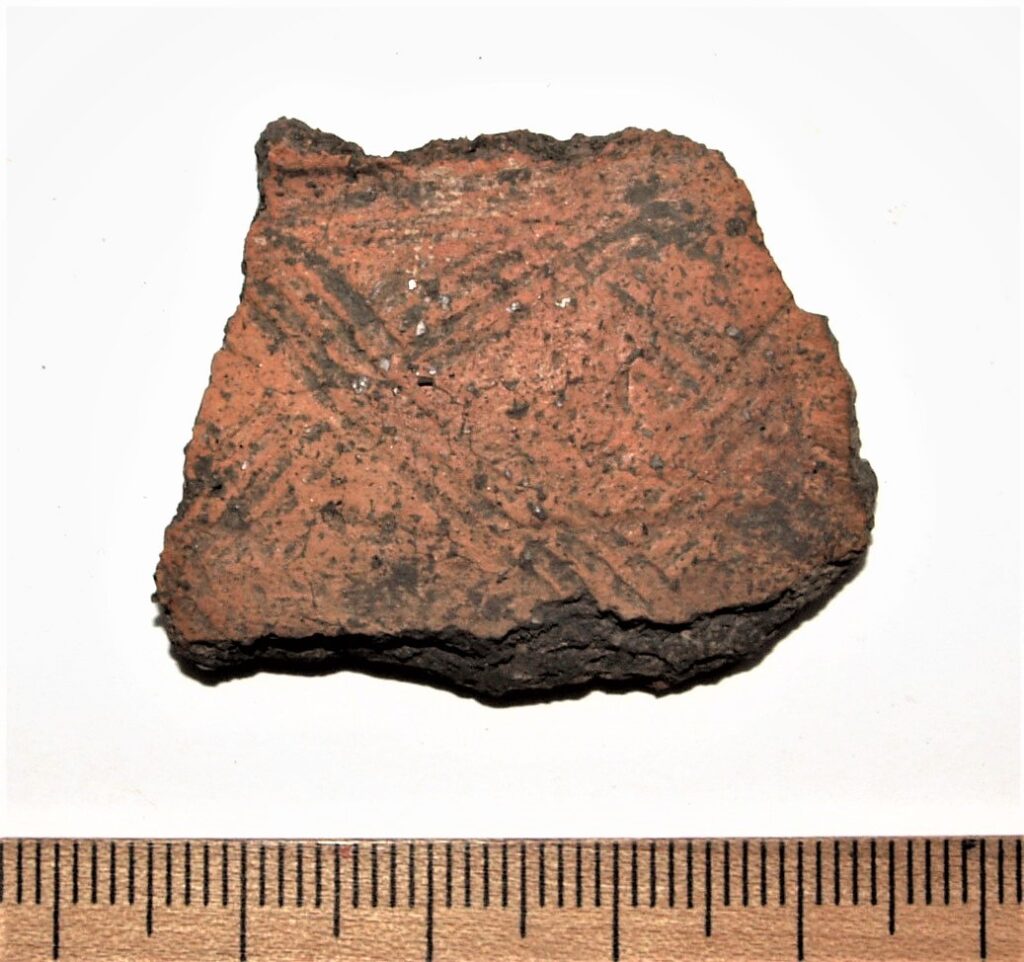 Õlatükk, käsitsikeraamika. Samasuguse võremustriga nõusid on leitud nt Rahu kalmest ja Soontagana linnuselt. Võremuster oli iseloomulik Loode- ja Lääne-Eestile ning Saaremaale, siinne variant peamiselt Saaremaale.