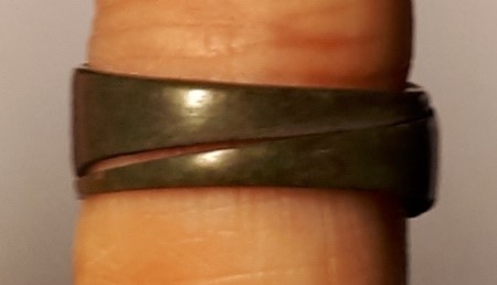 Õhukese laieneva keskosaga sõrmus, hõbe.