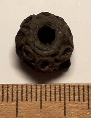 Hõbehelmes, rõngaskaunistusega. Samasugused on teada Lõhavere linnamäelt ja ühest Tartu aardest. Dateeritud arvatavasti 13. sajandisse.