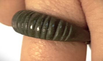 Pakseneva keskosaga põiki soonitud sõrmus, pronks. Väga levinud sõrmuse tüüp Eesti saartel, mida leitakse nii põletusmatustega kivikalmetest kui ka laibamatustest. Võib-olla oli kasutusel juba 12. sajandil (Mägi 2002, 109).