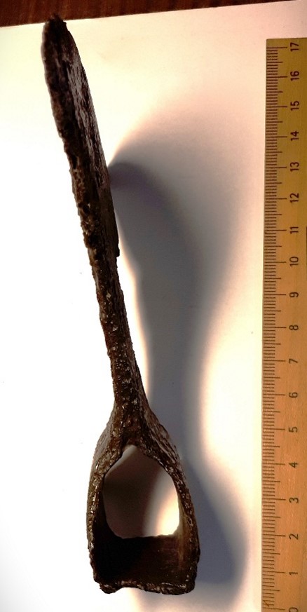 M-tüüpi kirves, leitud kaevust. Sarnane Peterseni M-tüüpi kirvega, kuid hiline variant, mis Lätis dateeritakse 13.-14. sajandisse (Mugurēvičs 2008, 201; Brūzis 2016, 189).