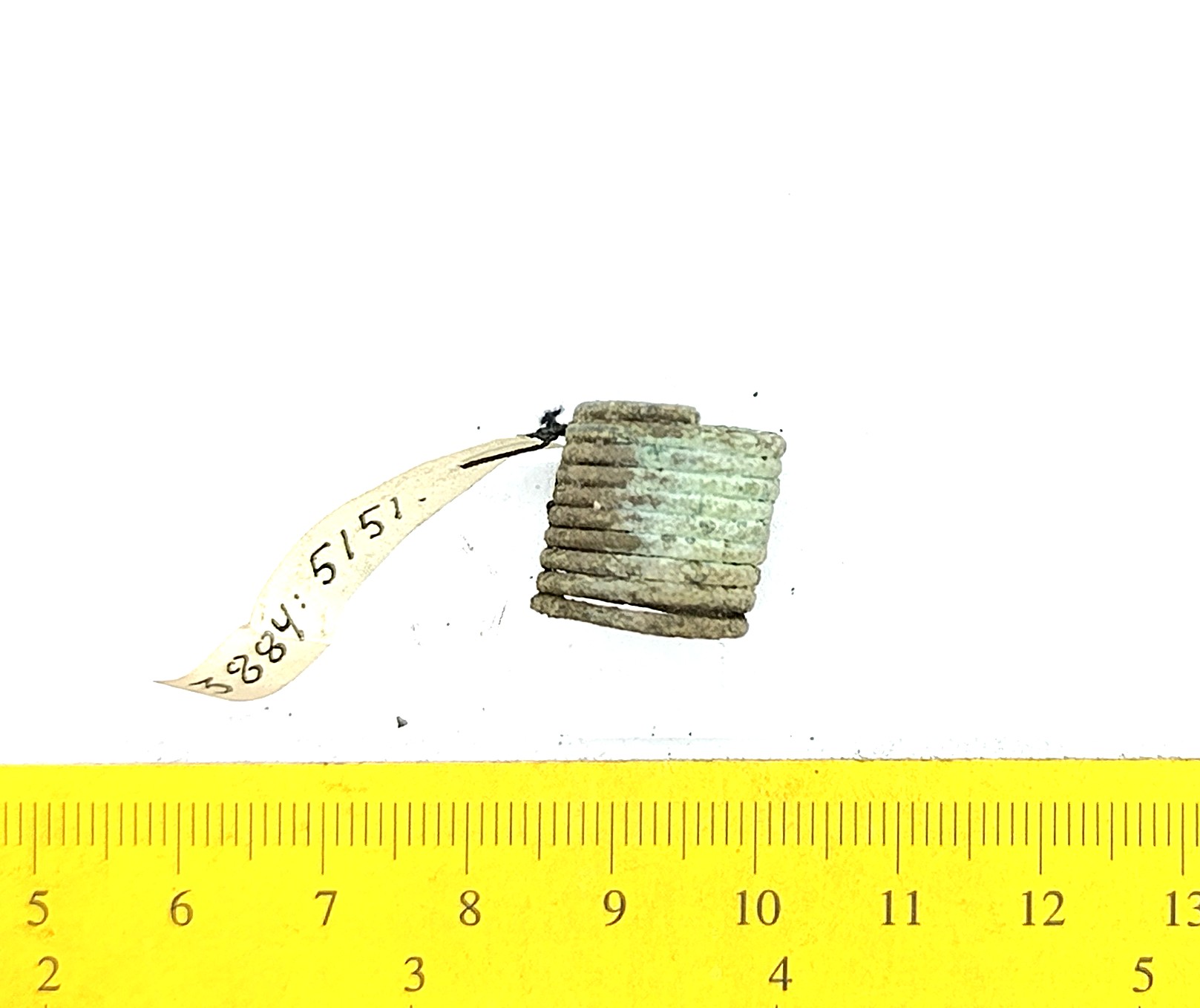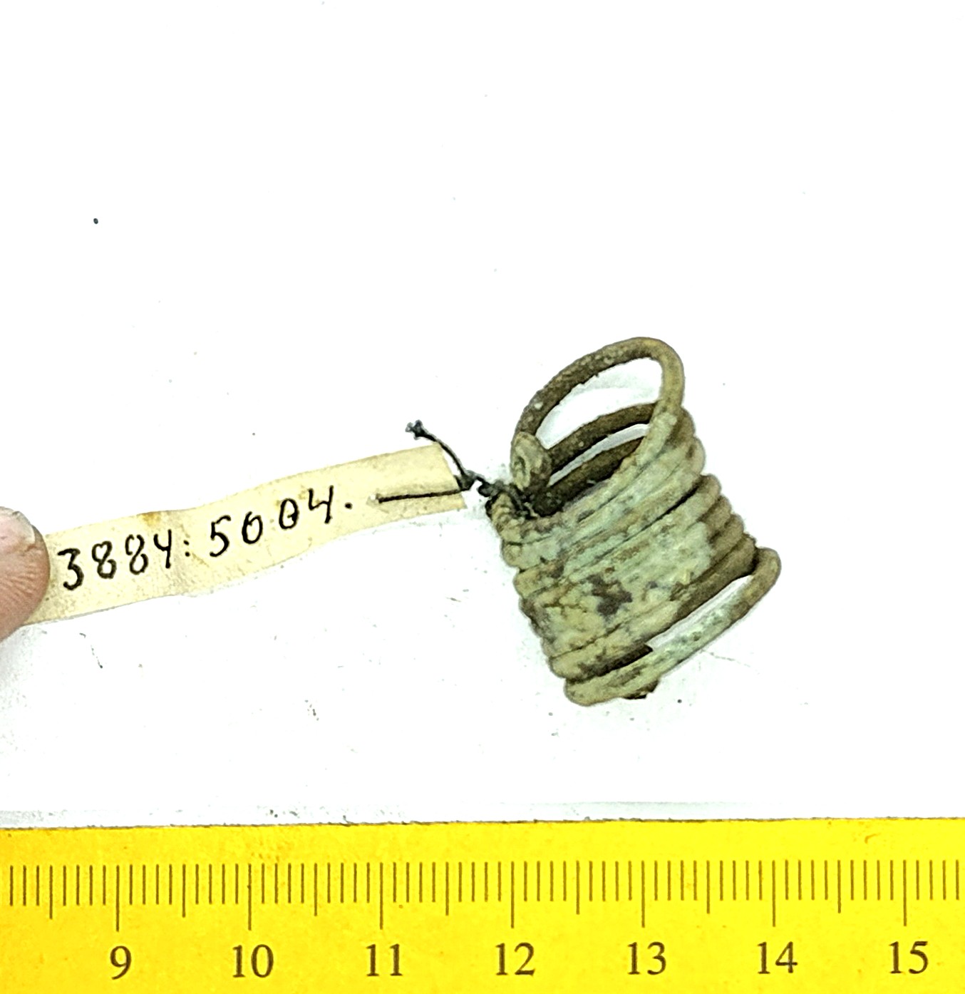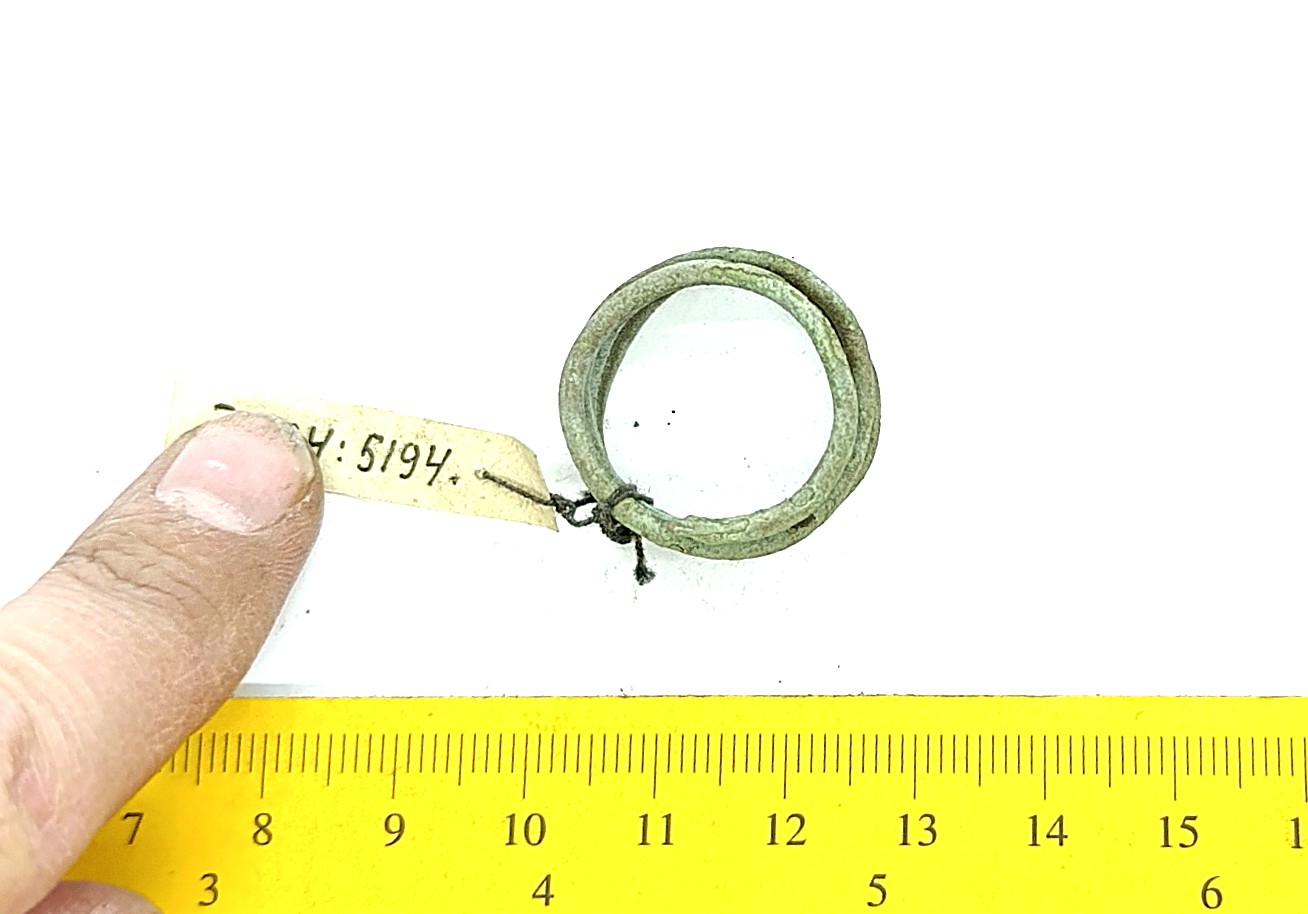 Finger-ring, copper alloy. This type of finger-ring has a thickened middle section. A well-known type of ring in the archaeological material of the Estonian islands often found in both stone graves with cremations as well as inhumation burials. Could have come into use already in the 12th century AD (Mägi 2002, 109).