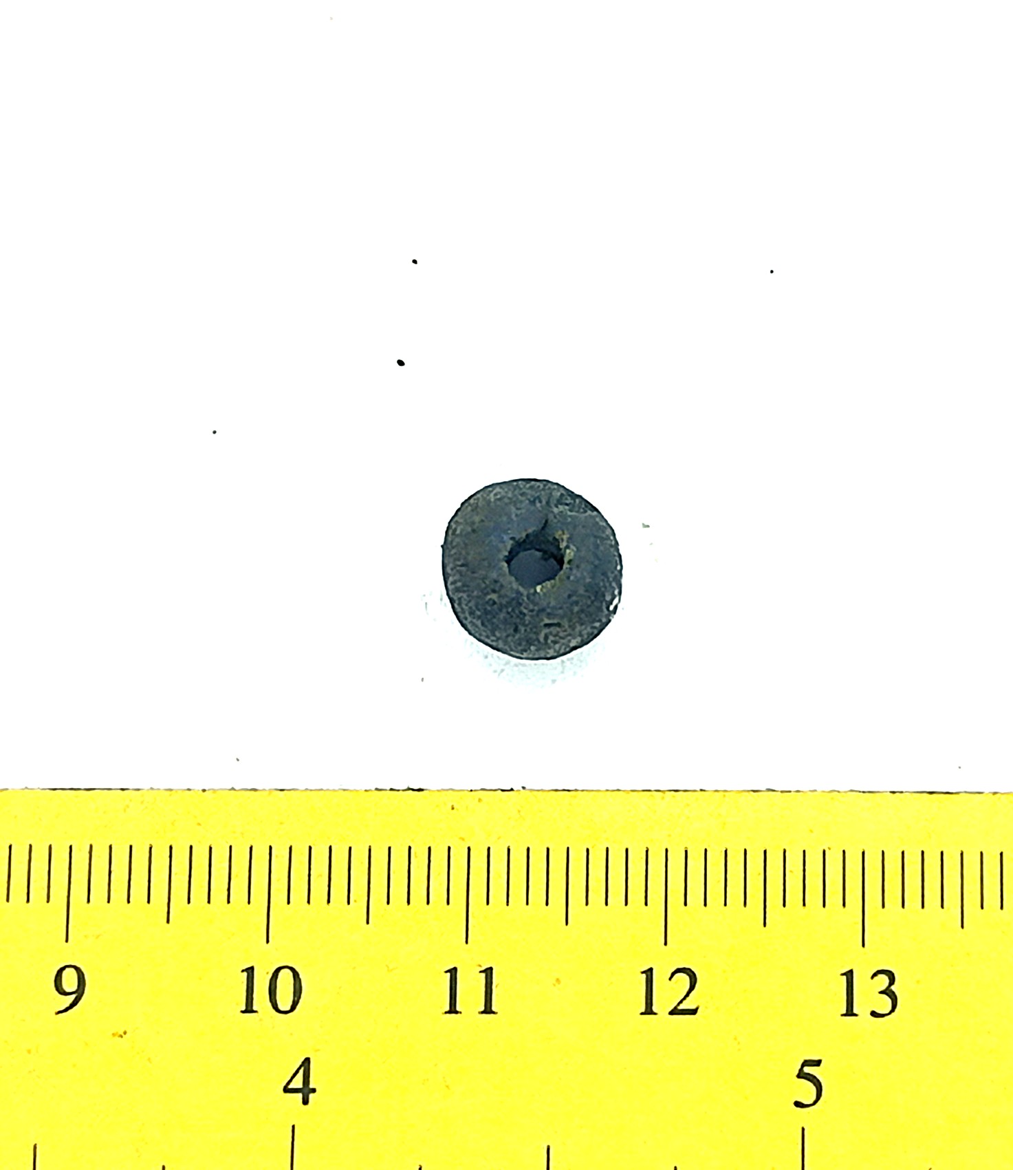 Bead, dark blue glass.