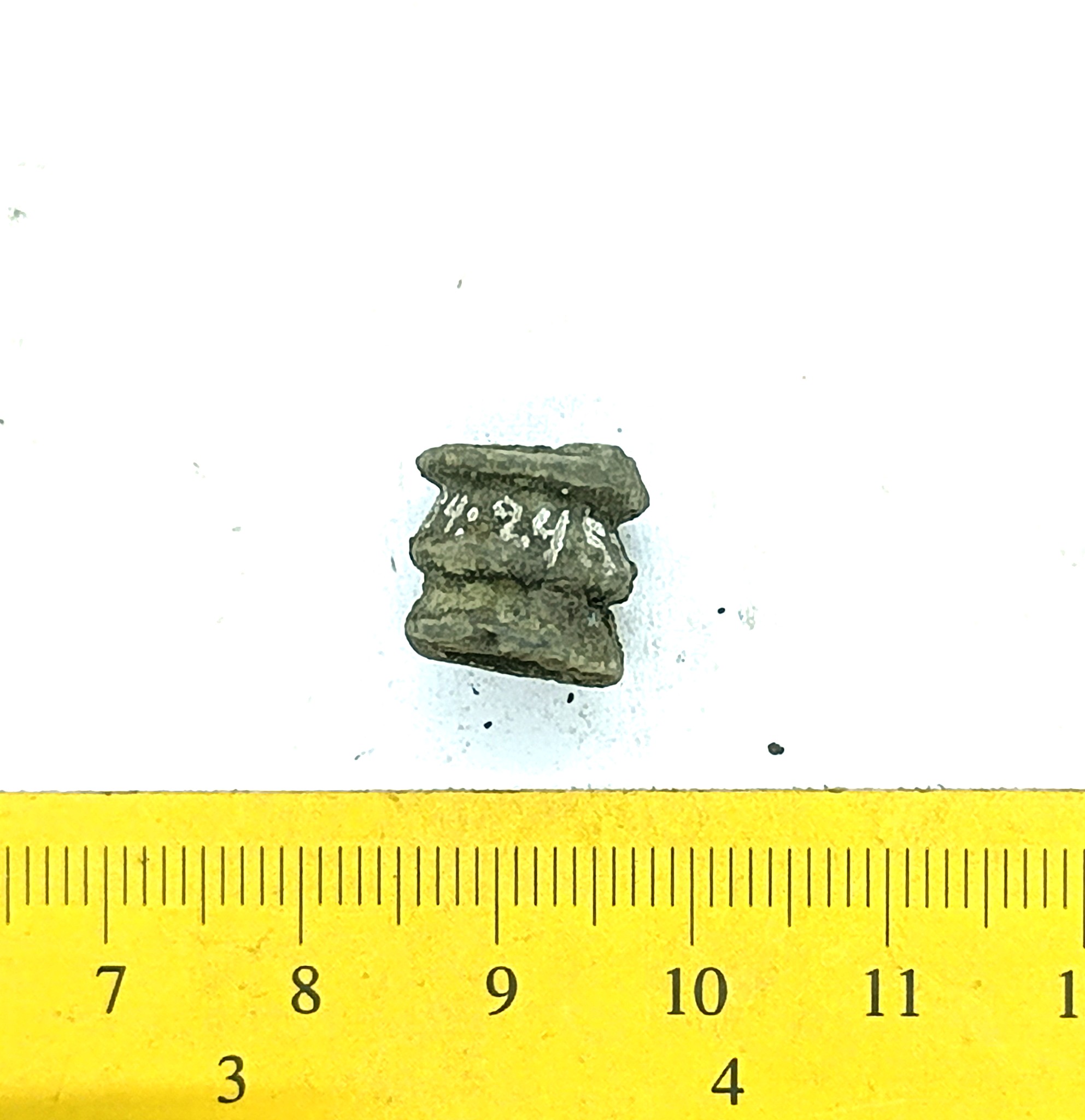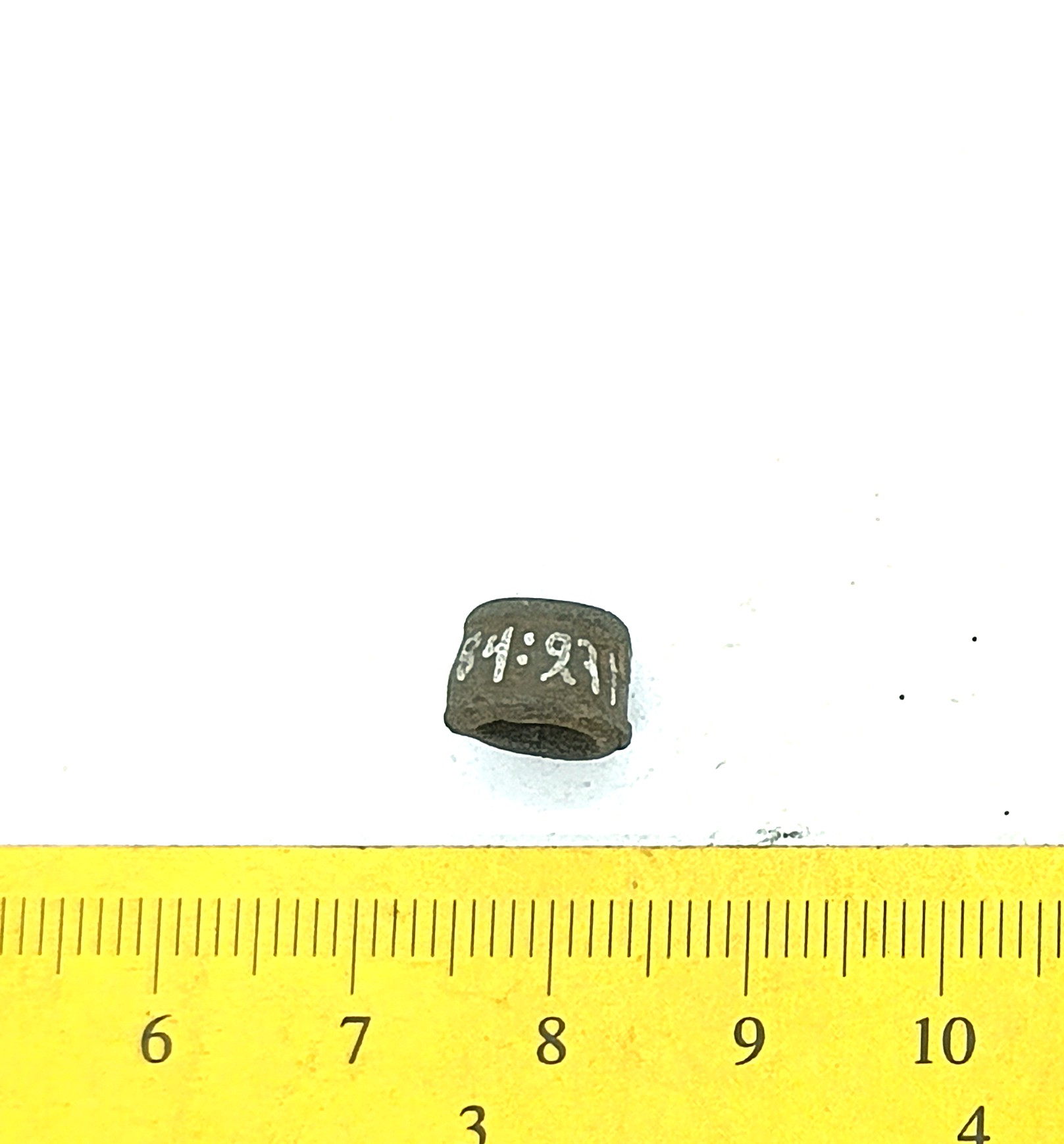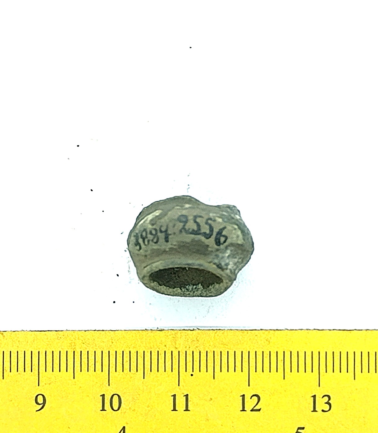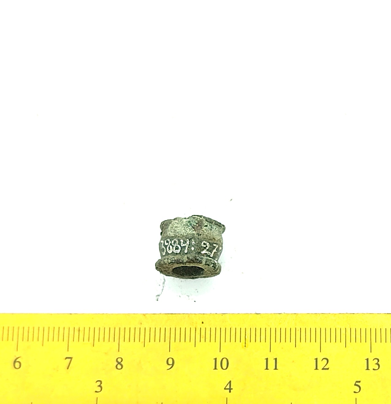 Bead, copper alloy. Bronze beads of this type have been found in stone graves with cremations (e.g. Mägi 2002, Pl. 13: 19–21) as well as inhumation burials dating to the 12th – 13th centuries (see Spirģis 2008, 421). In Estonia they are usually associated with belt ornaments.