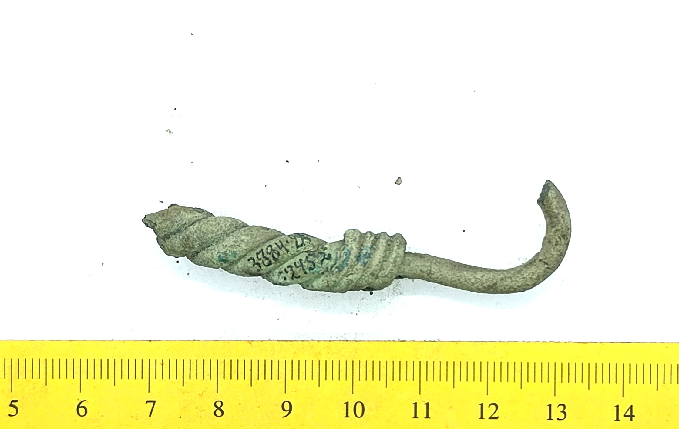 Fragment of a neck ring, copper alloy. Neck rings made of several twisted wires date back to the 12th–13th century and are one of the most common types of neck rings in the archaeological material of Saaremaa (Mägi 2002, 107). In Latvia, especially eastern Latvia, neck rings made of several twisted wires that had looped ends were worn already during the 11th–12th century (Zariņa 2006, 246).