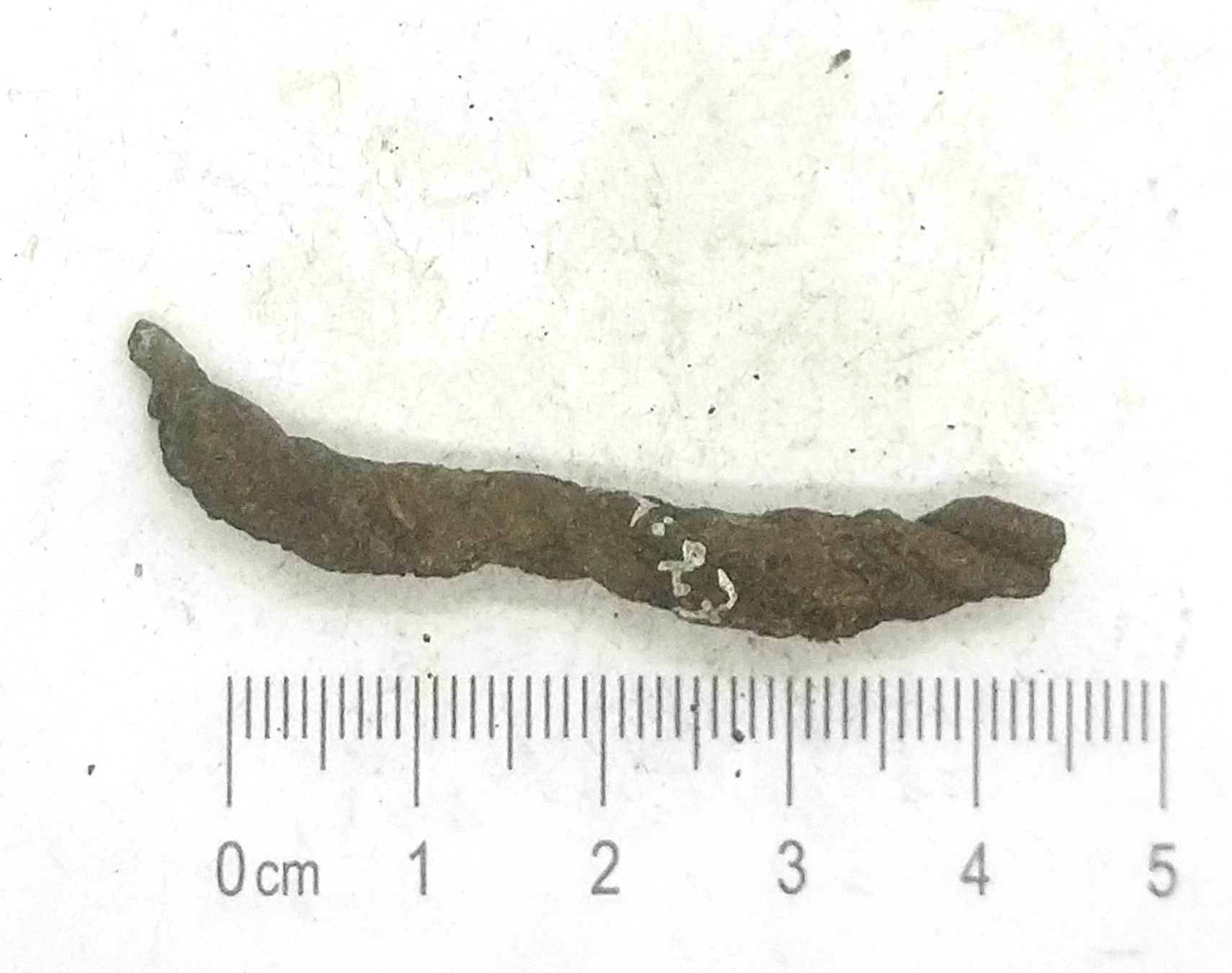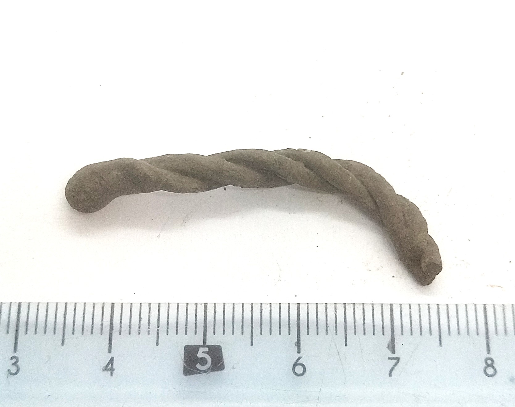 Fragment of a neck ring, copper alloy. Fragments of neck rings made of several twisted wires are common finds in Saaremaa stone graves with cremations. Since it is normally not possible to determine the exact type of these neck-rings, they can be dated to the whole period from the 10th to the 13th century (see also: Mägi 2002, 107).