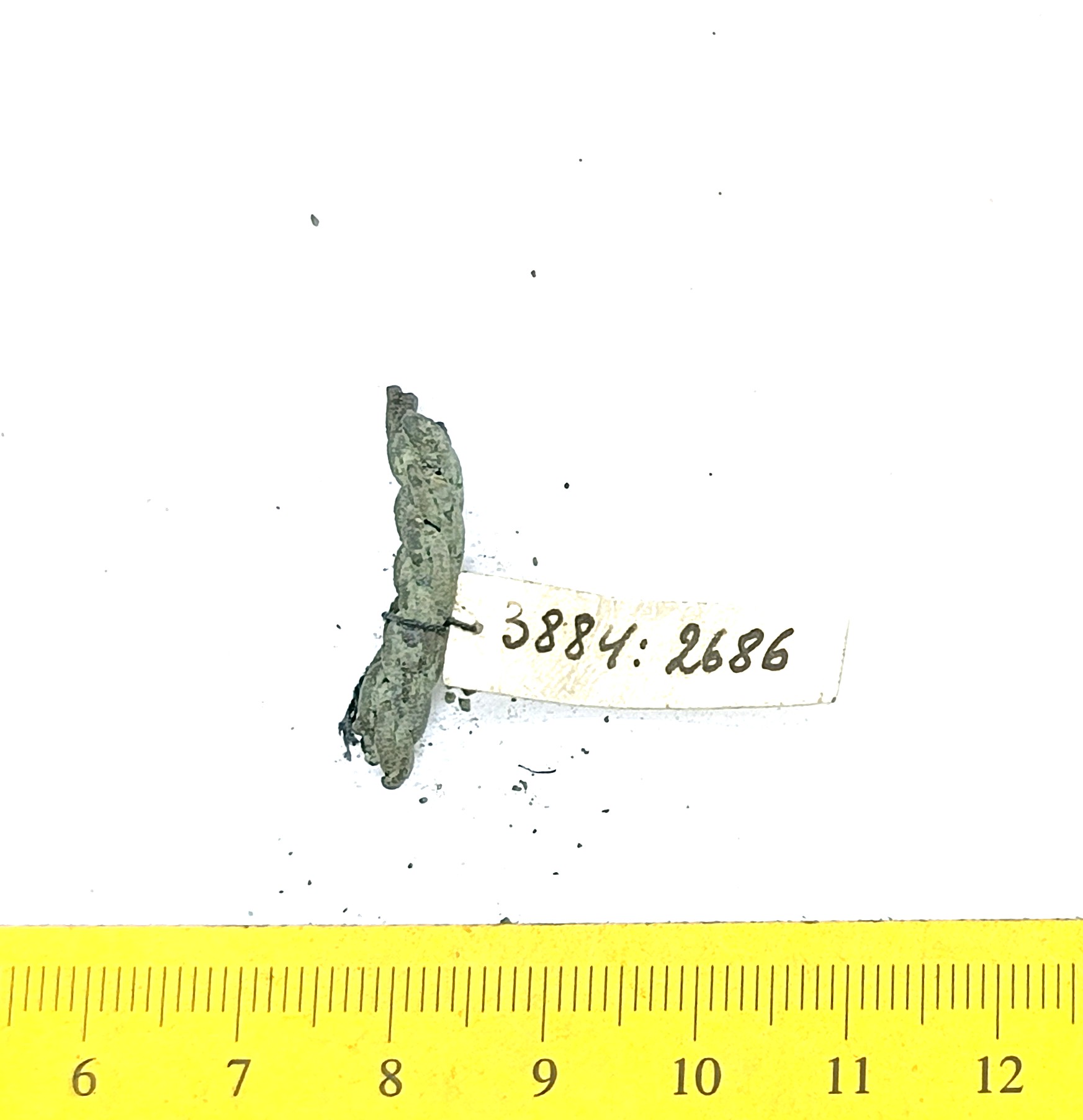Fragment of a neck ring, copper alloy. Fragments of neck rings made of several twisted wires are common finds in Saaremaa stone graves with cremations. Since it is normally not possible to determine the exact type of these neck-rings, they can be dated to the whole period from the 10th to the 13th century (see also: Mägi 2002, 107).