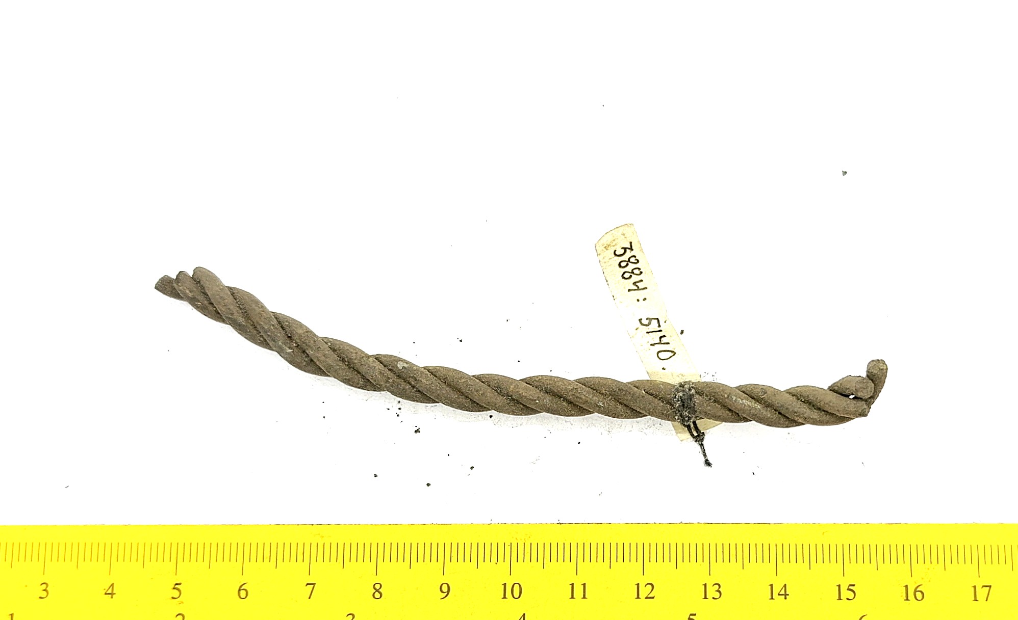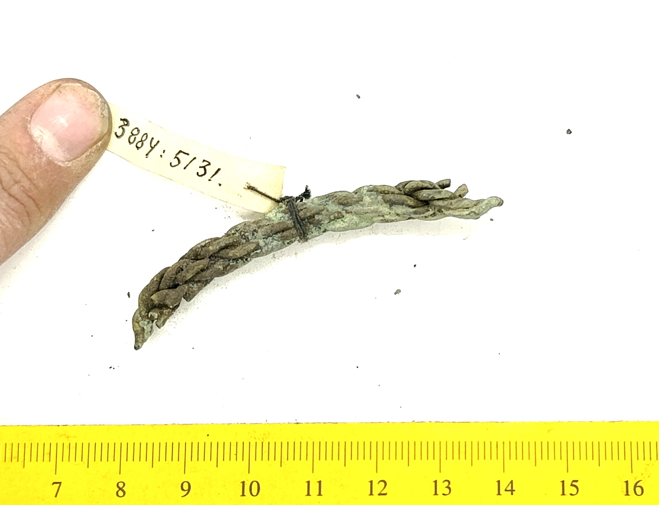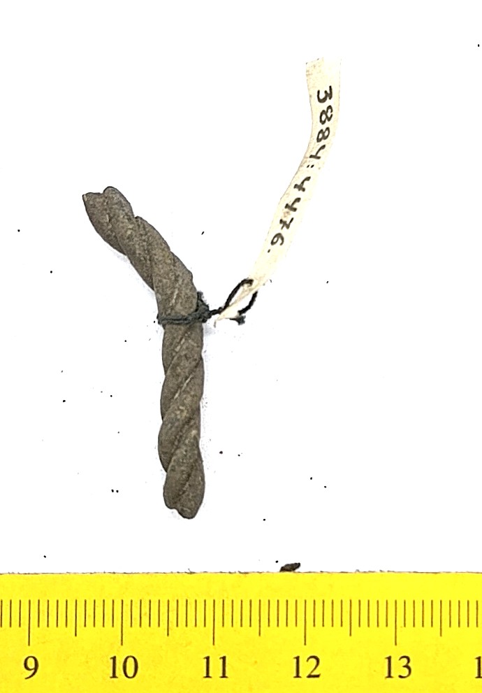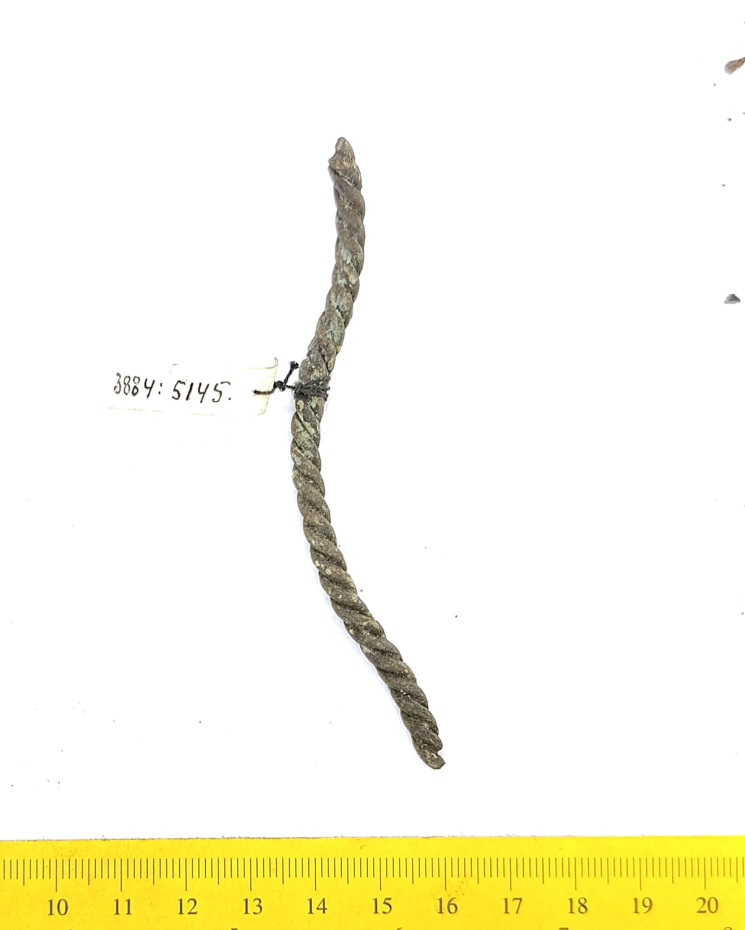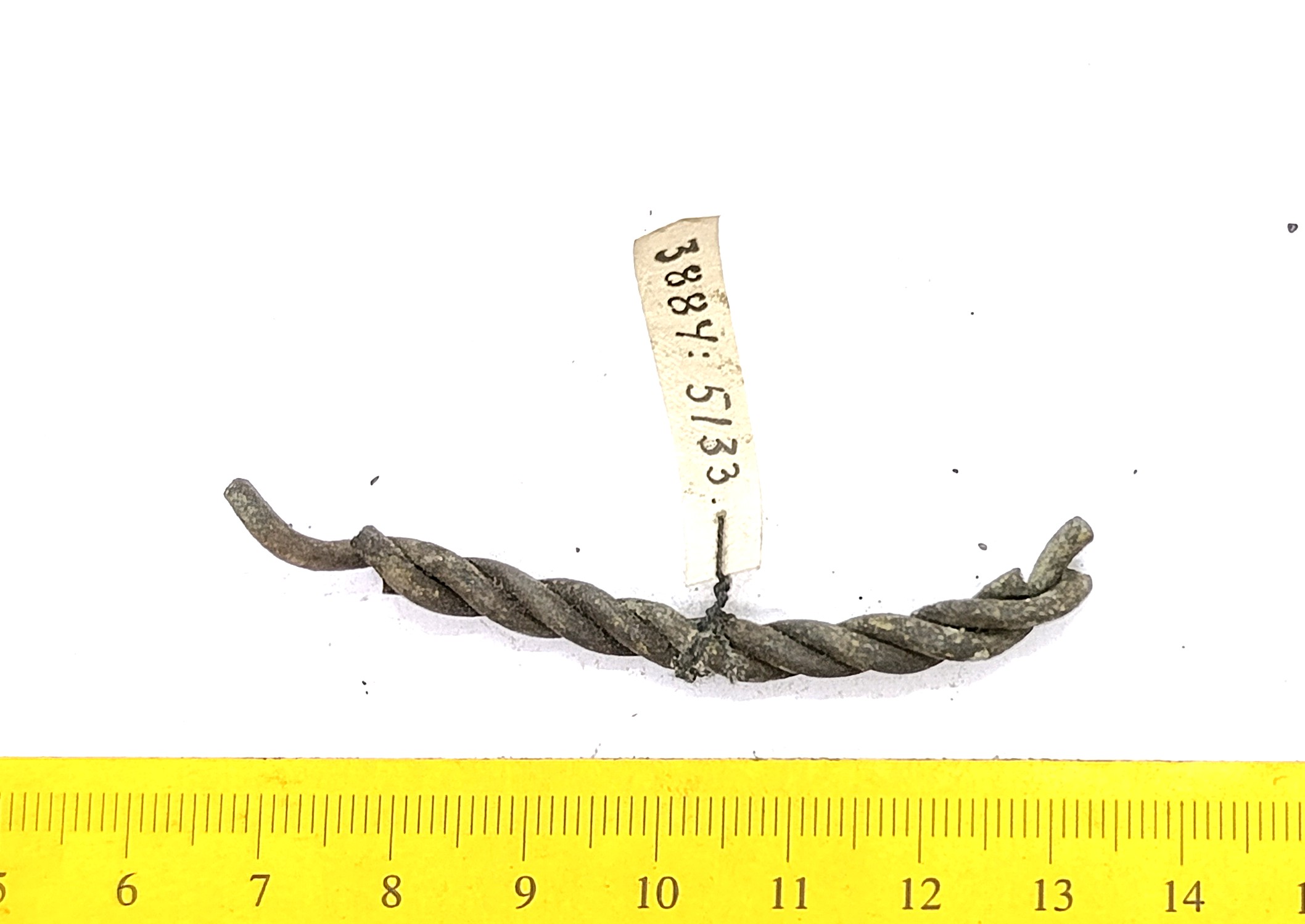 Fragment of a neck ring, copper alloy. Fragments of neck rings made of several twisted wires are common finds in Saaremaa stone graves with cremations. Since it is normally not possible to determine the exact type of these neck-rings, they can be dated to the whole period from the 10th to the 13th century (see also: Mägi 2002, 107).