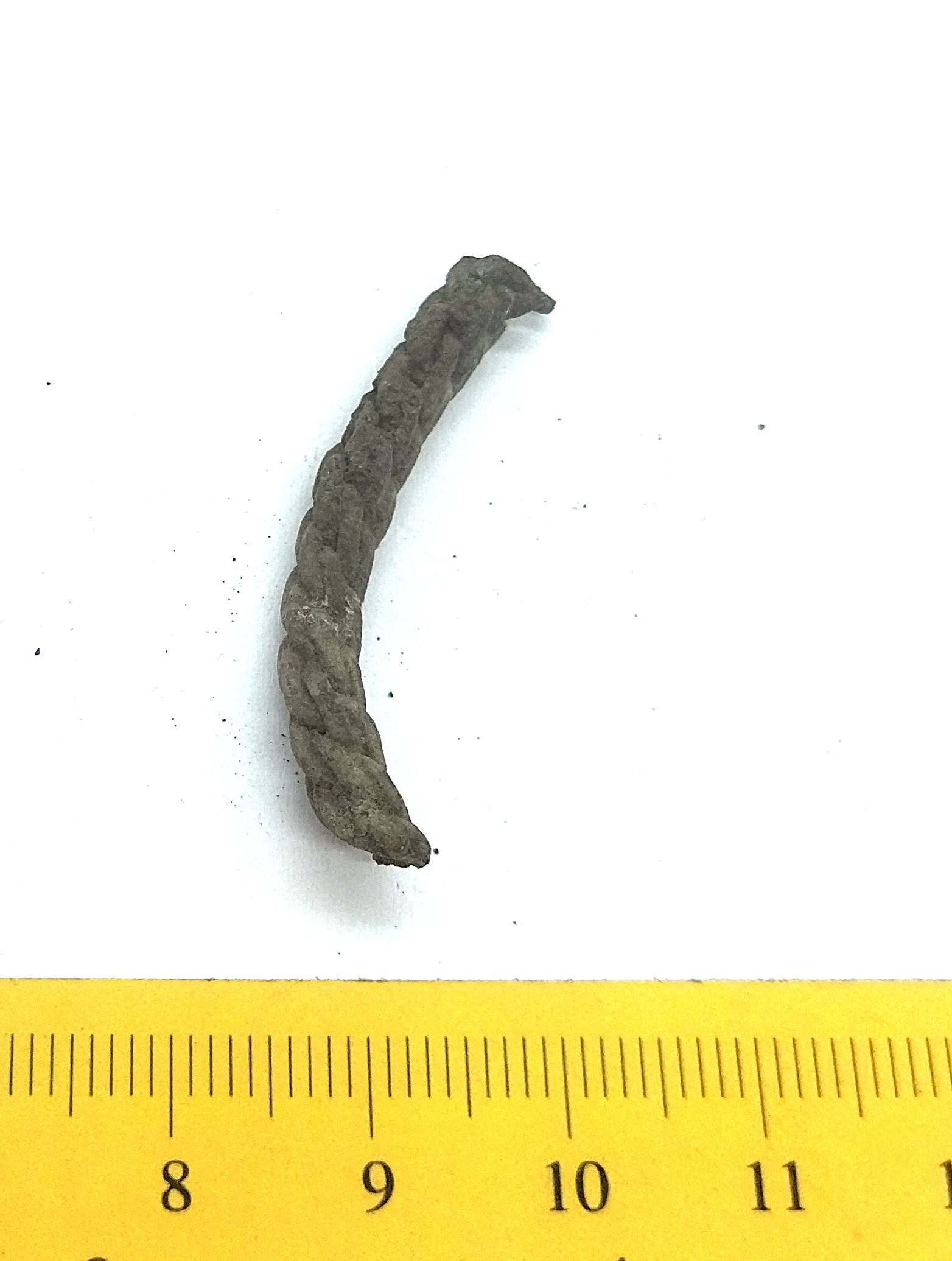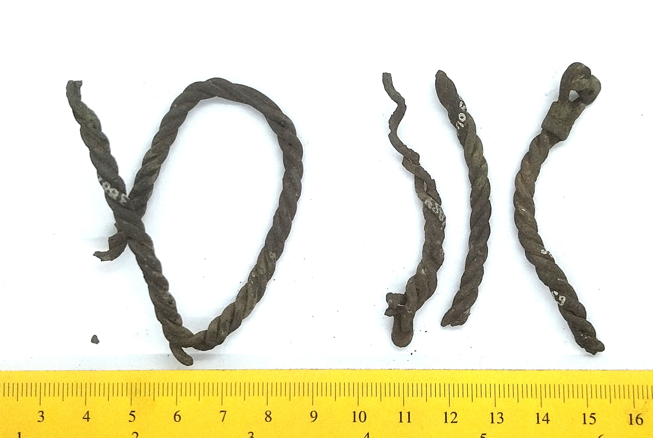 Fragments of a neck ring, 4, copper alloy. Fragments of neck rings made of several twisted wires are common finds in Saaremaa stone graves with cremations. Since it is normally not possible to determine the exact type of these neck-rings, they can be dated to the whole period from the 10th to the 13th century (see also: Mägi 2002, 107).