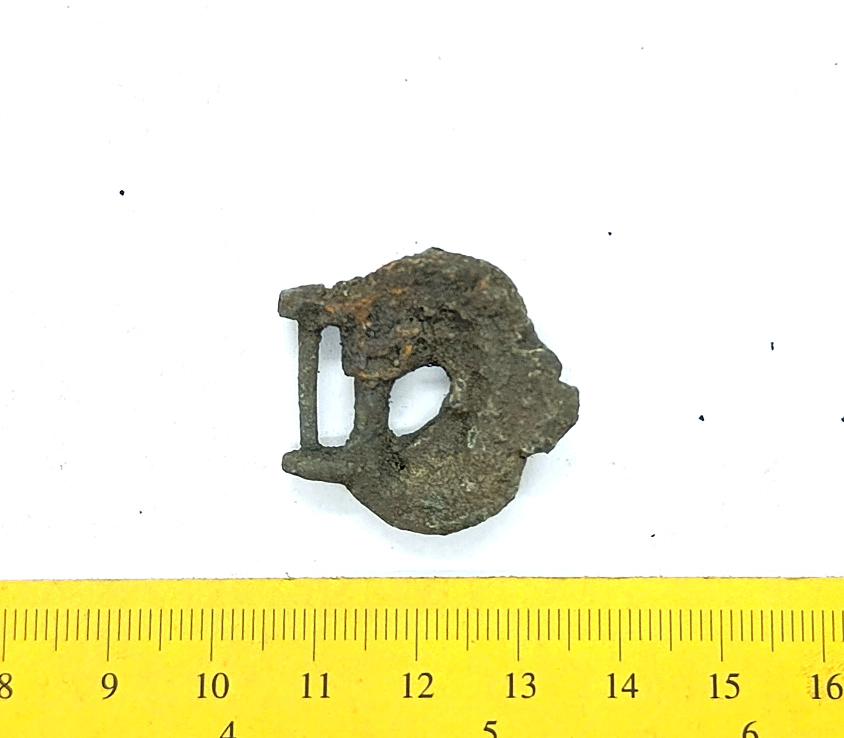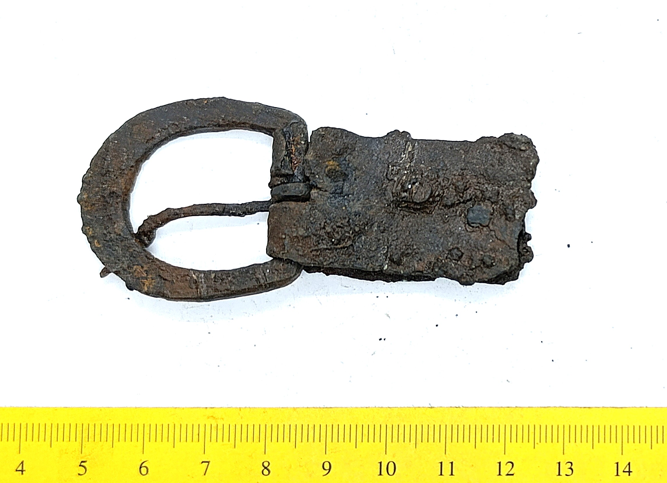 Semioval buckle, iron. Similar ones are in Couronia been found in 10th-11th-century graves (e g Griciuvienė 2009, 123, 195), but they can also be later.