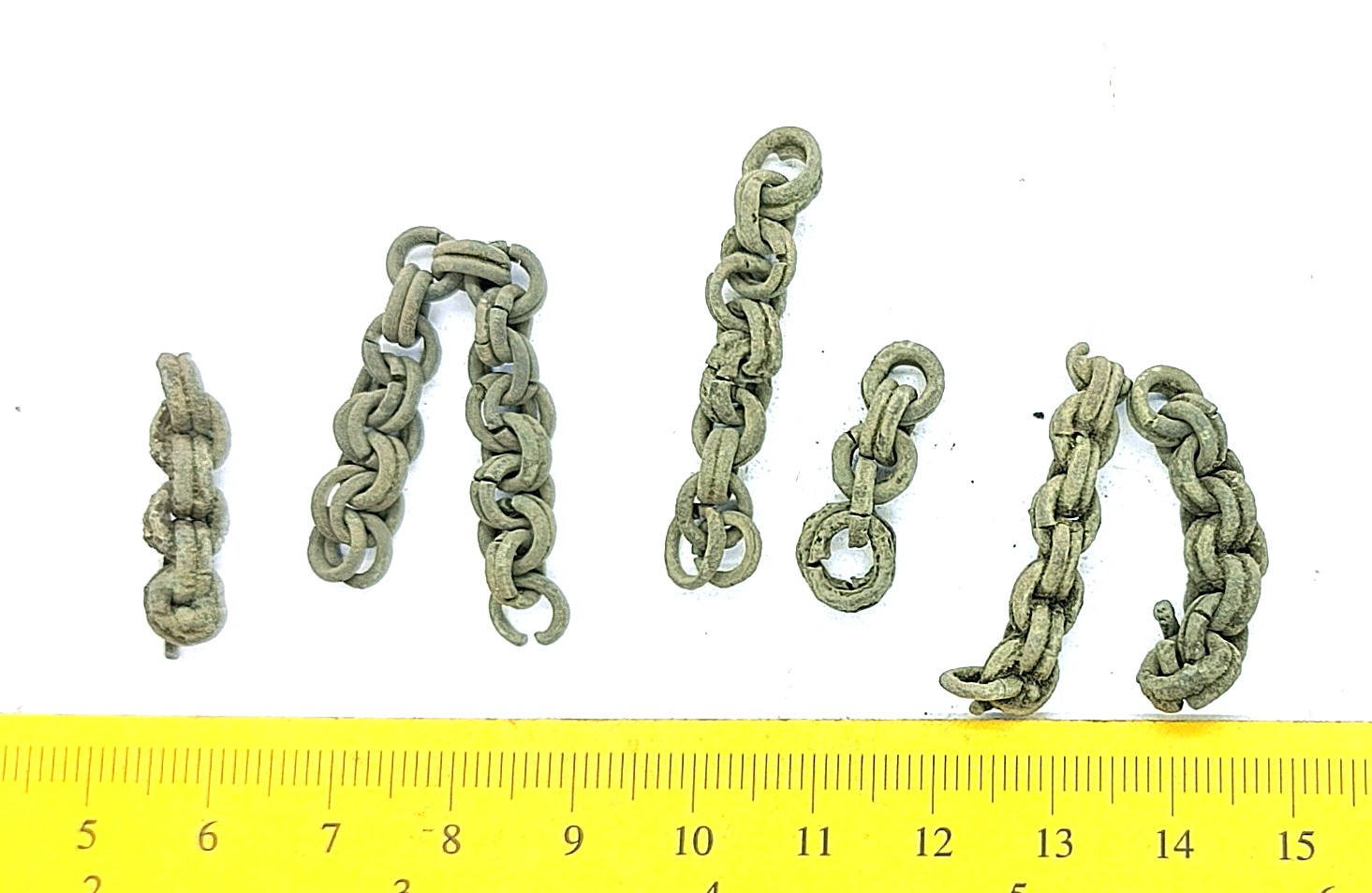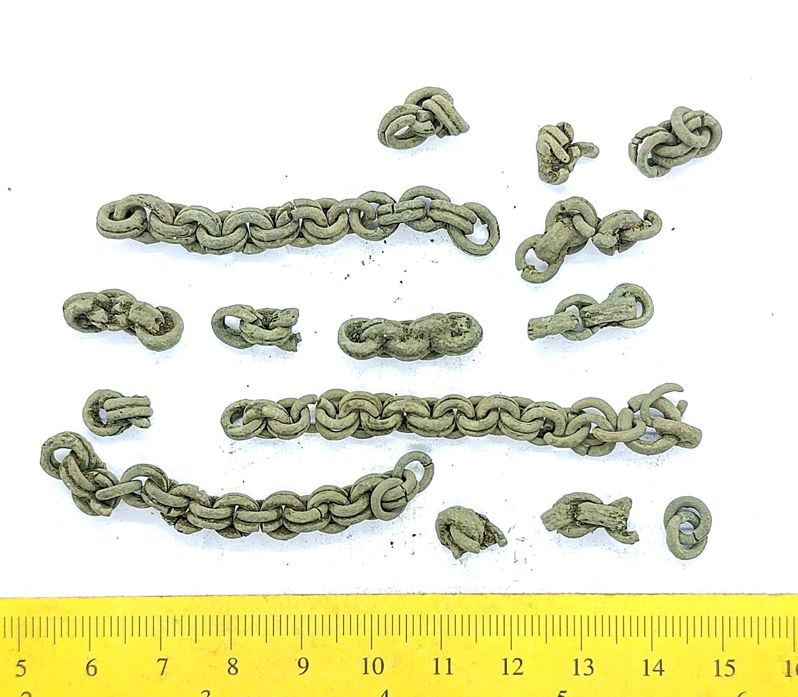 Chain fragments, 15, copper alloy.