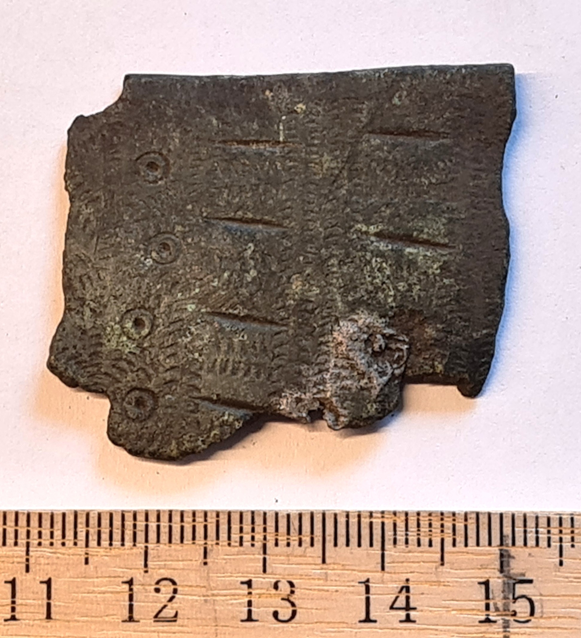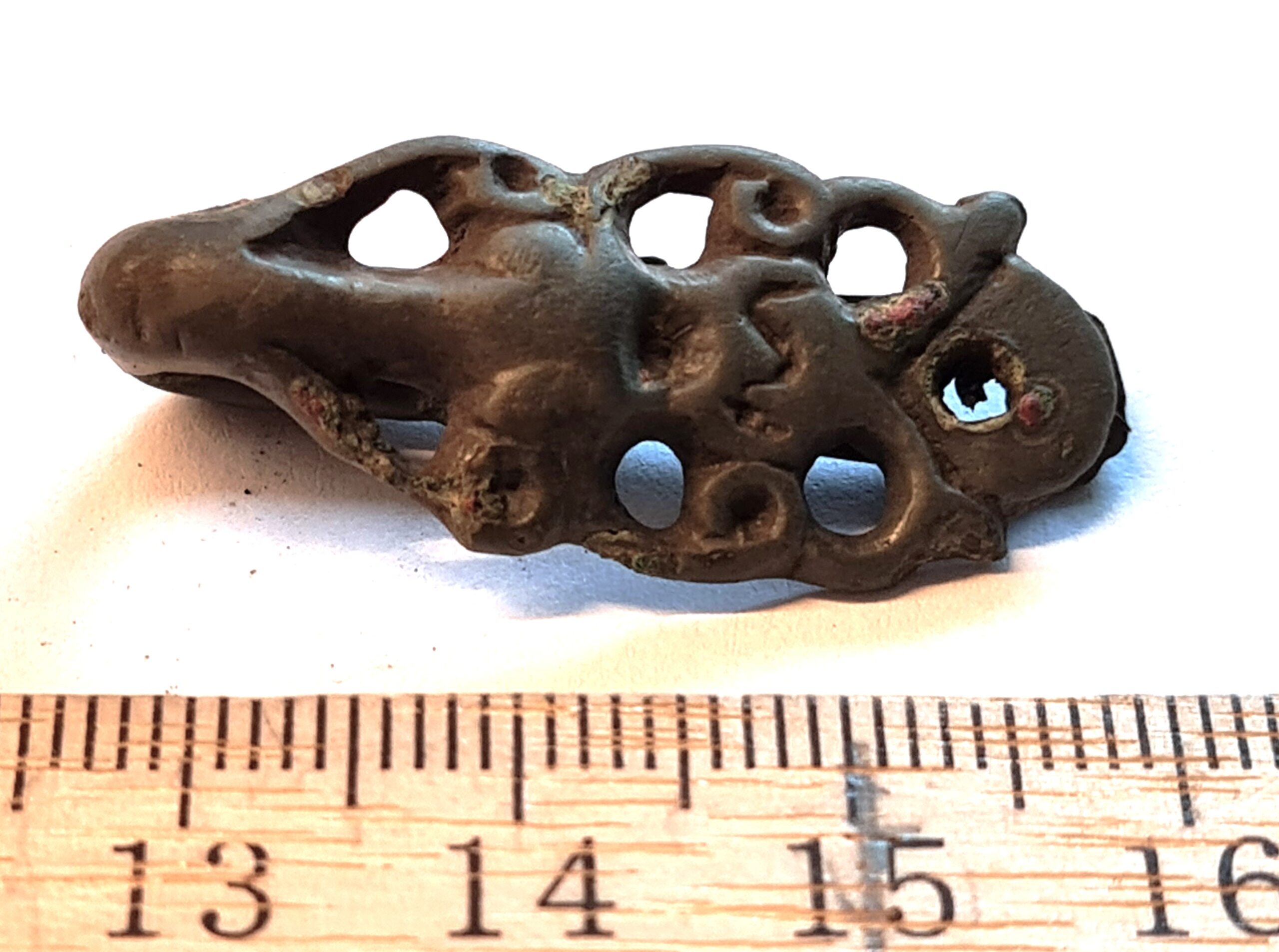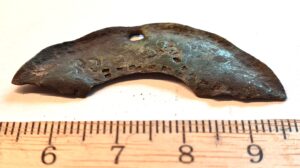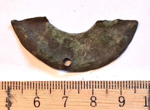 Fragment of brooch (or pendant?), copper alloy. Perhaps from a ring brooch of the 13th century (Kirme 1986, draw. 45-46).