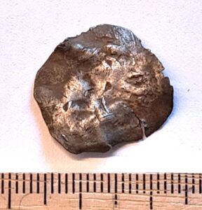 Coin, silver. Very damaged.