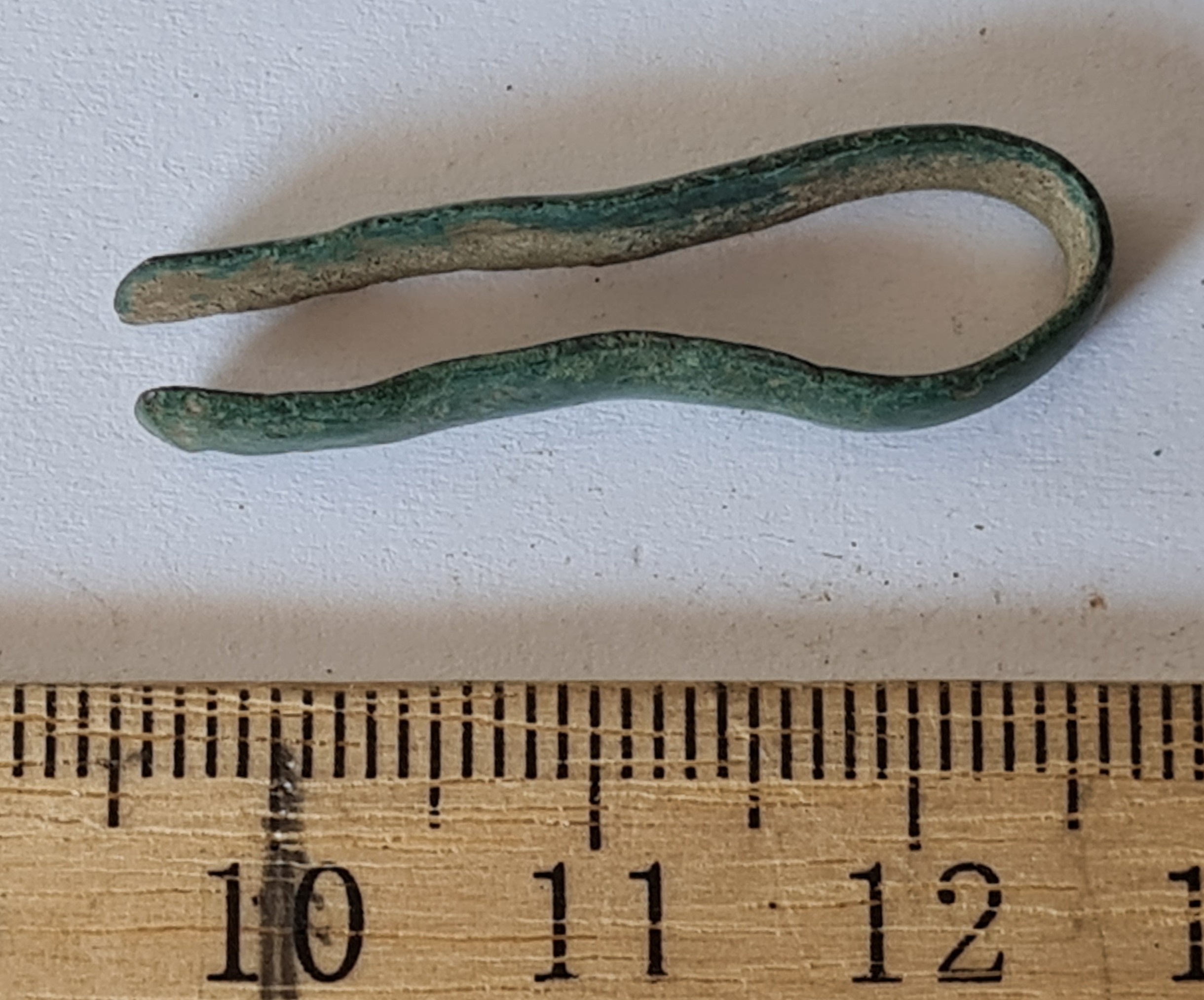 Tweezers, copper alloy. Medieval or Early Modern.