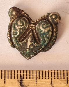 Heart-shaped cast belt mounts, silver. Simpler heart-shaped cast belt mounts made of copper alloy were widespread mainly in the 11th–12th centuries (e.g. Mägi 2002, pl. 30; Mandel 2017, pl. XLII).
