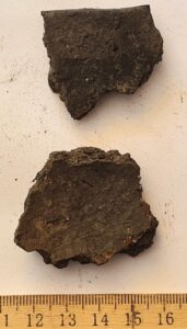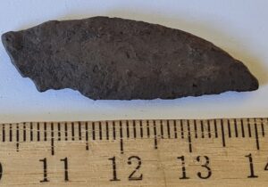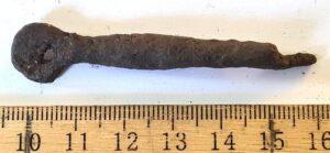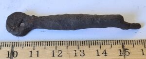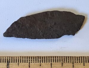 Fragment of iron artefact. Neither edge is sharp; therefore, it is not a knife.