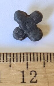 Mount, tin. Medieval or Early Modern. Tin mounts occur in a wide variety of shapes; however, at Siksälä, mounts of this particular form have been found in burials 22 and 33, both dated to the 14th century (Valk et al. 2014, 43, 54).