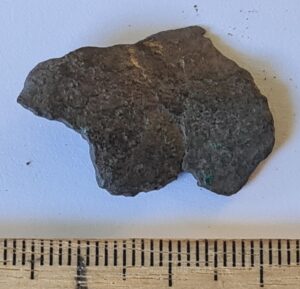Fragment of finger-ring with middle shield, copper alloy. In Siksälä, such examples have been found mainly in burials dating to the late 13th or 14th century (e.g. Valk et al 2014, 27). In any case, they should not be earlier than the mid-13th century, but they may also date as late as the 15th century (Valk & Laul 2014, 118).