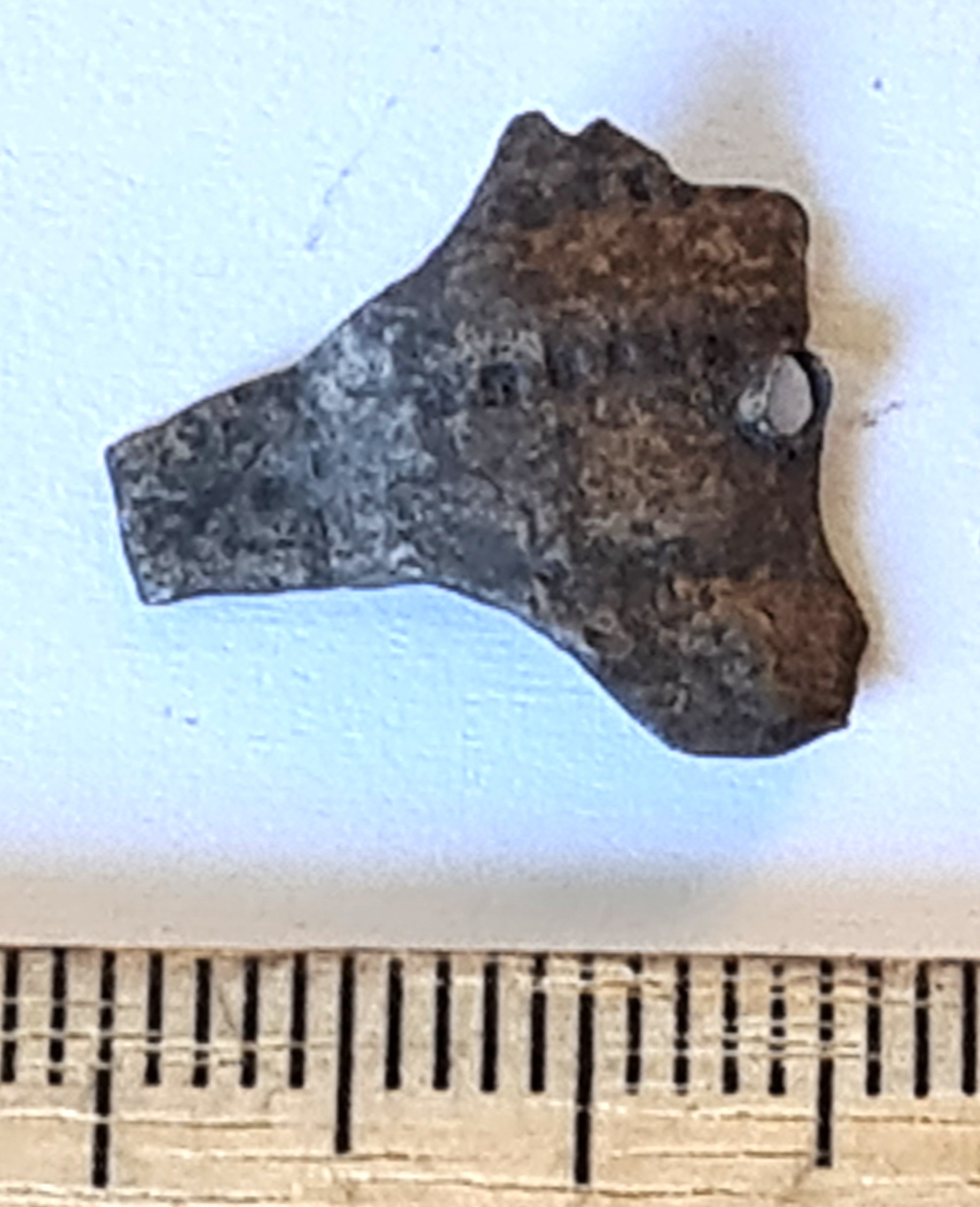 Fragment of artefact, copper alloy.