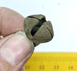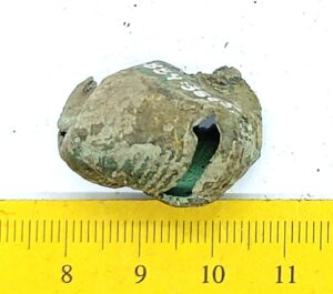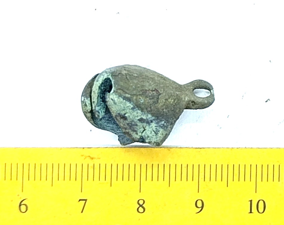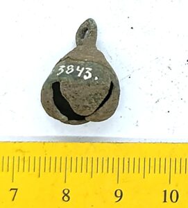 Bridle bells, copper alloy. These bells were attached to bridles. In Estonia they have been found from stone graves with cremation burials, where they can also date to the early 13th century.