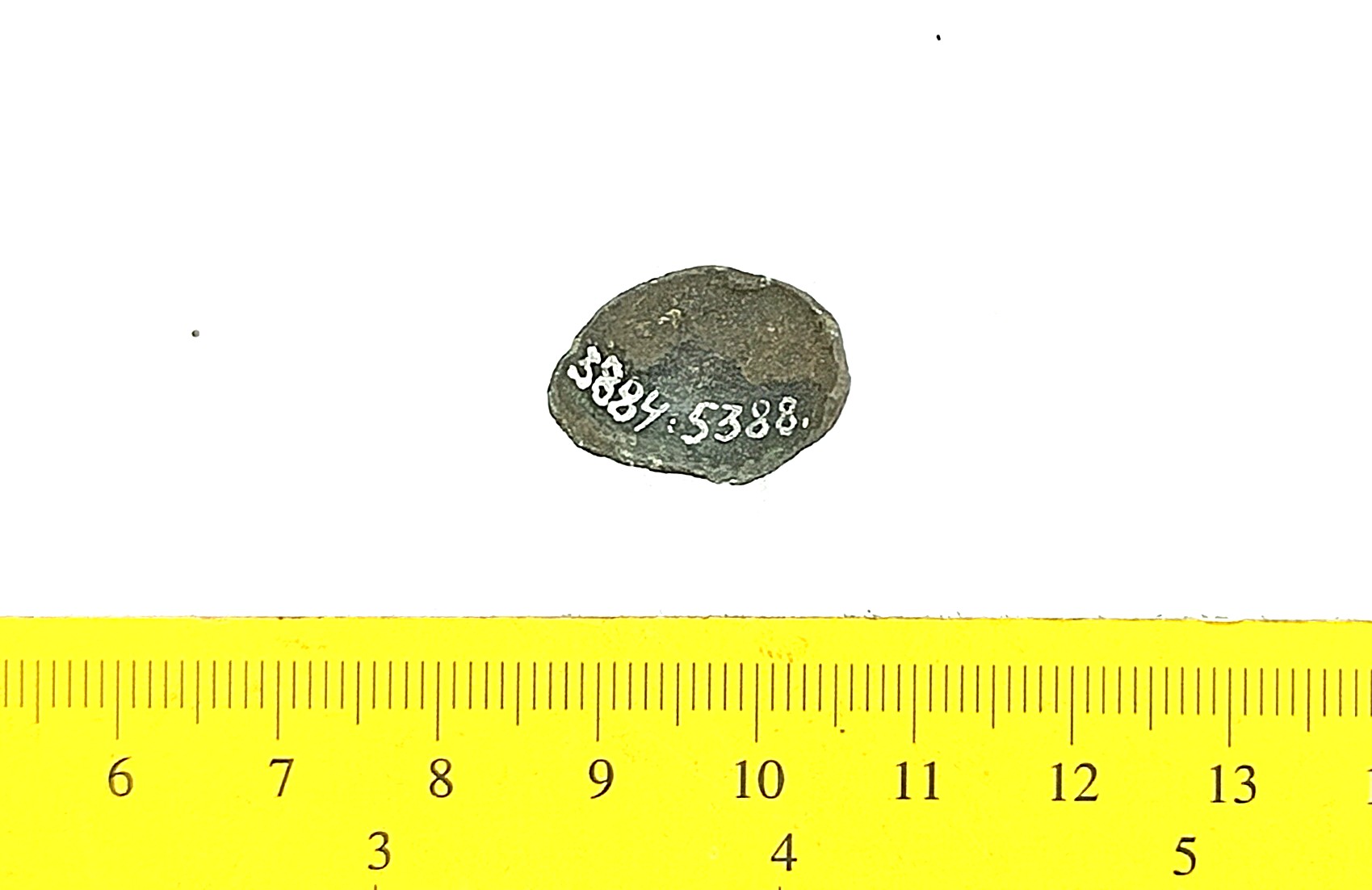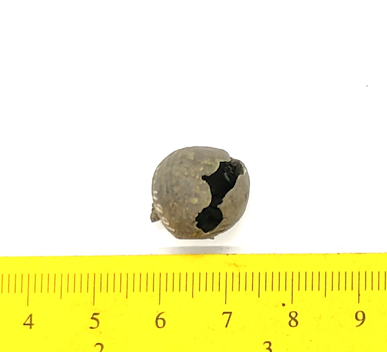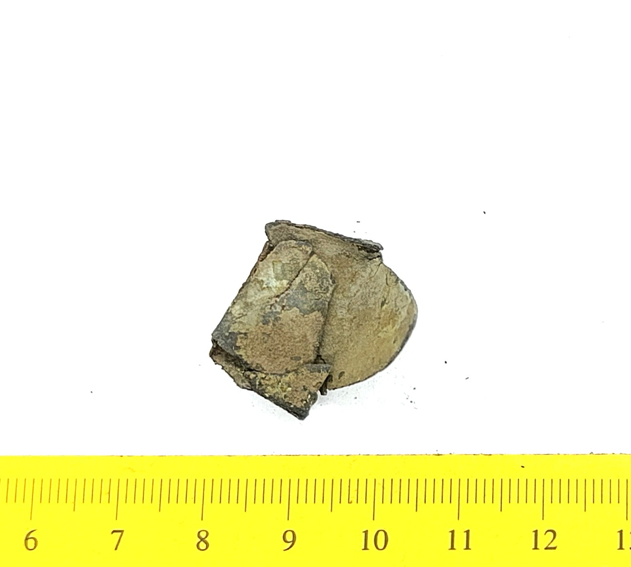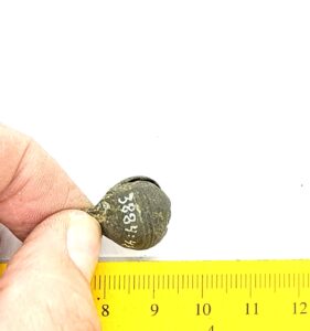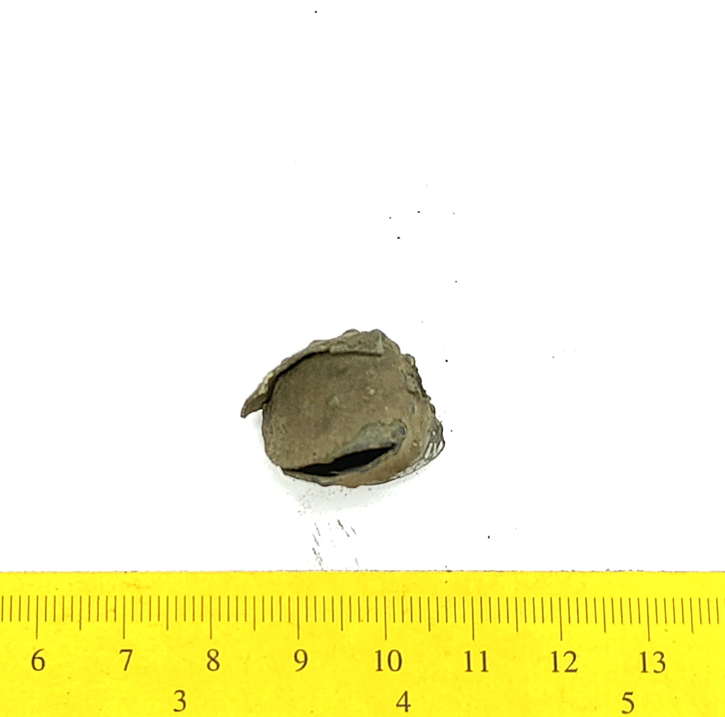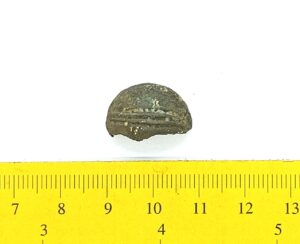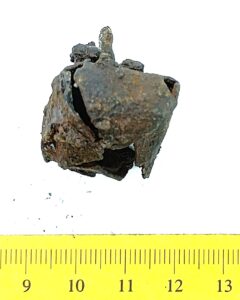 Bell, copper alloy. Similar to Rainio´s (2010) group 4 bells that are characterized by an ornament of horizontal lines that is often very faint. Bells of this type have been found in Finland, Poland, Estonia, Latvia, Lithuania, Ukraine and Russia.