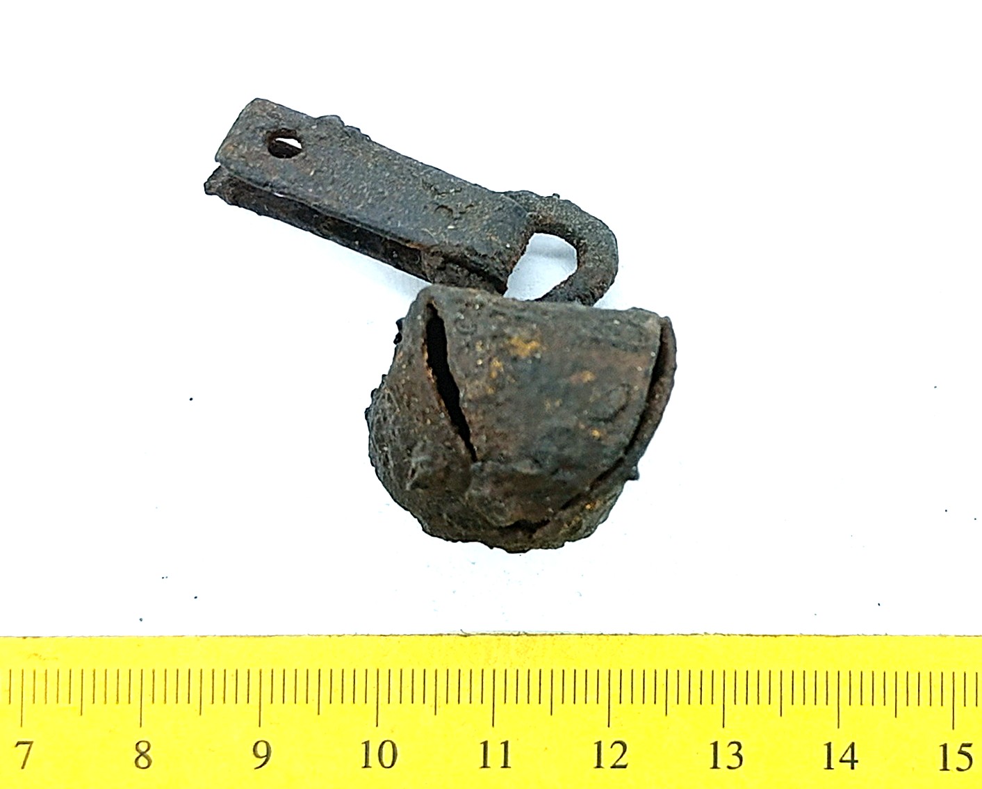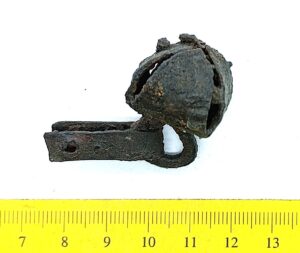 Bridle bells, iron. These iron bells were attached to bridles. In Estonia they have been found from stone graves with cremation burials, where they can also date to the early 13th century.