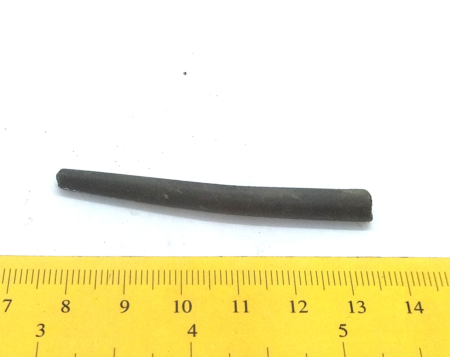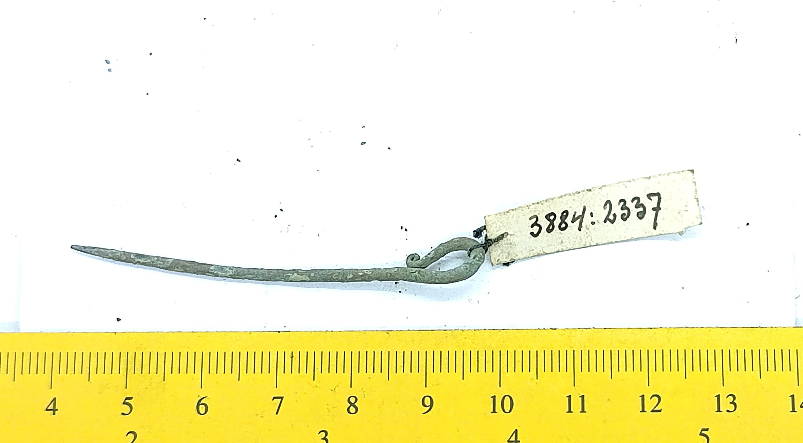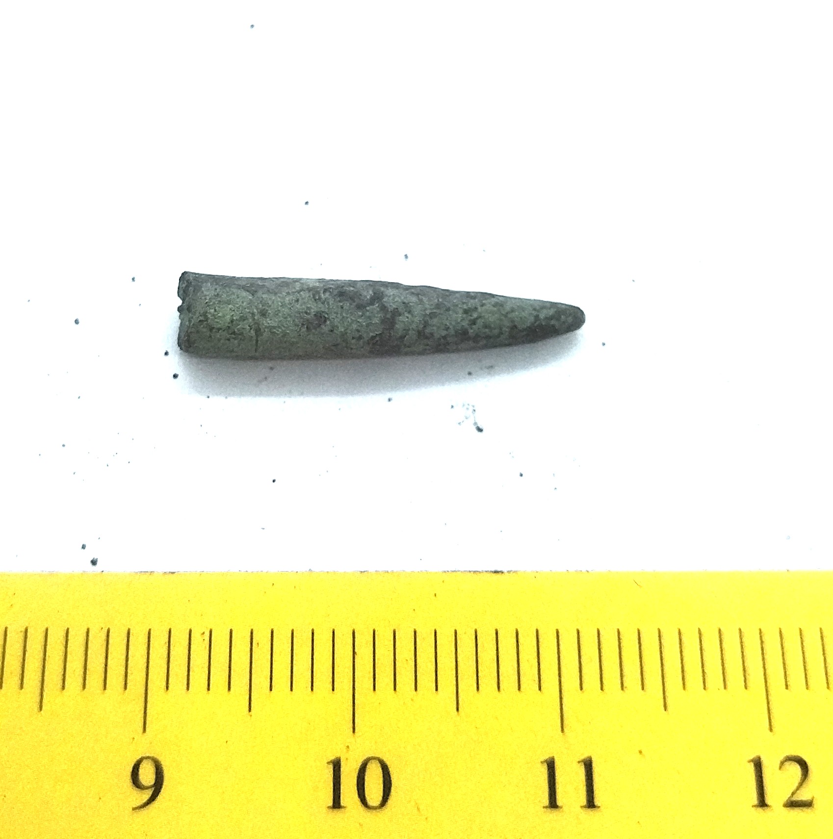 Pin, copper alloy. These small pins were probably used to attach chains that decorated headdresses (Mägi, 2002, 103). They have been found in stone graves with cremations as well as in inhumations that appeared around 1200 AD.