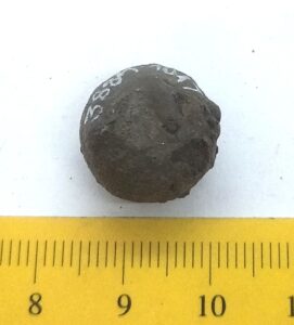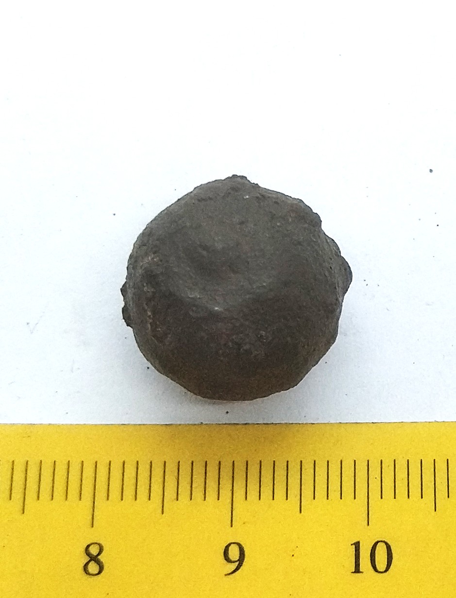 Spherical weight, copper alloy and iron.