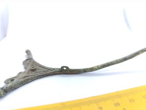 Scales, copper alloy. In both Estonian and Latvian archaeological material scales of this type appeared in the end of the 10th century and were used until the 13th century (Berga 2017, 62). Scales were used mainly to weigh silver (Laul & Tamla 2014, 39).