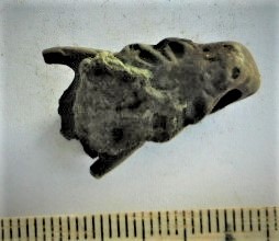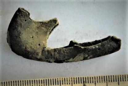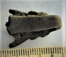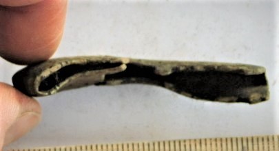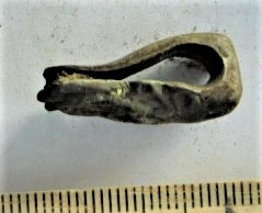 Fragment of sword scabbard end, bronze. Type I according to Kazakevićius , widespread in Couronia, Prussia and Saaremaa.