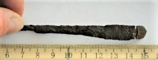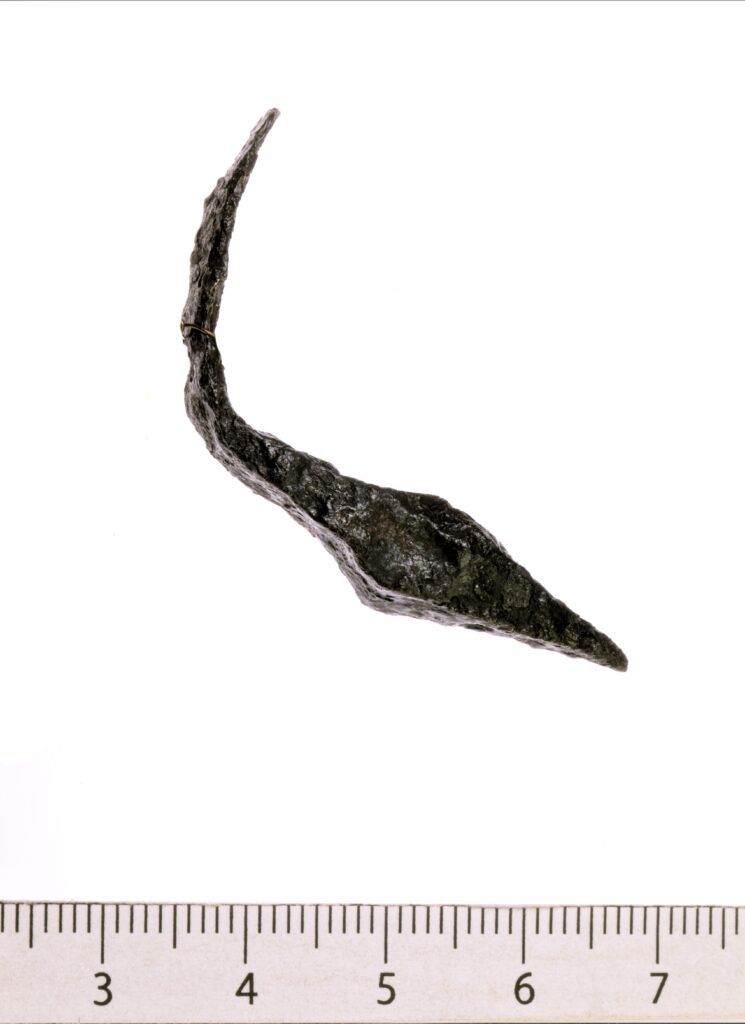 Tanged arrow-head, iron, with sharp oval blade.