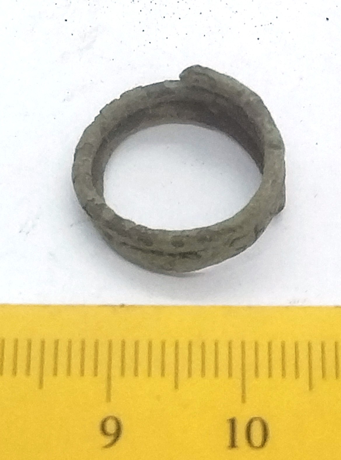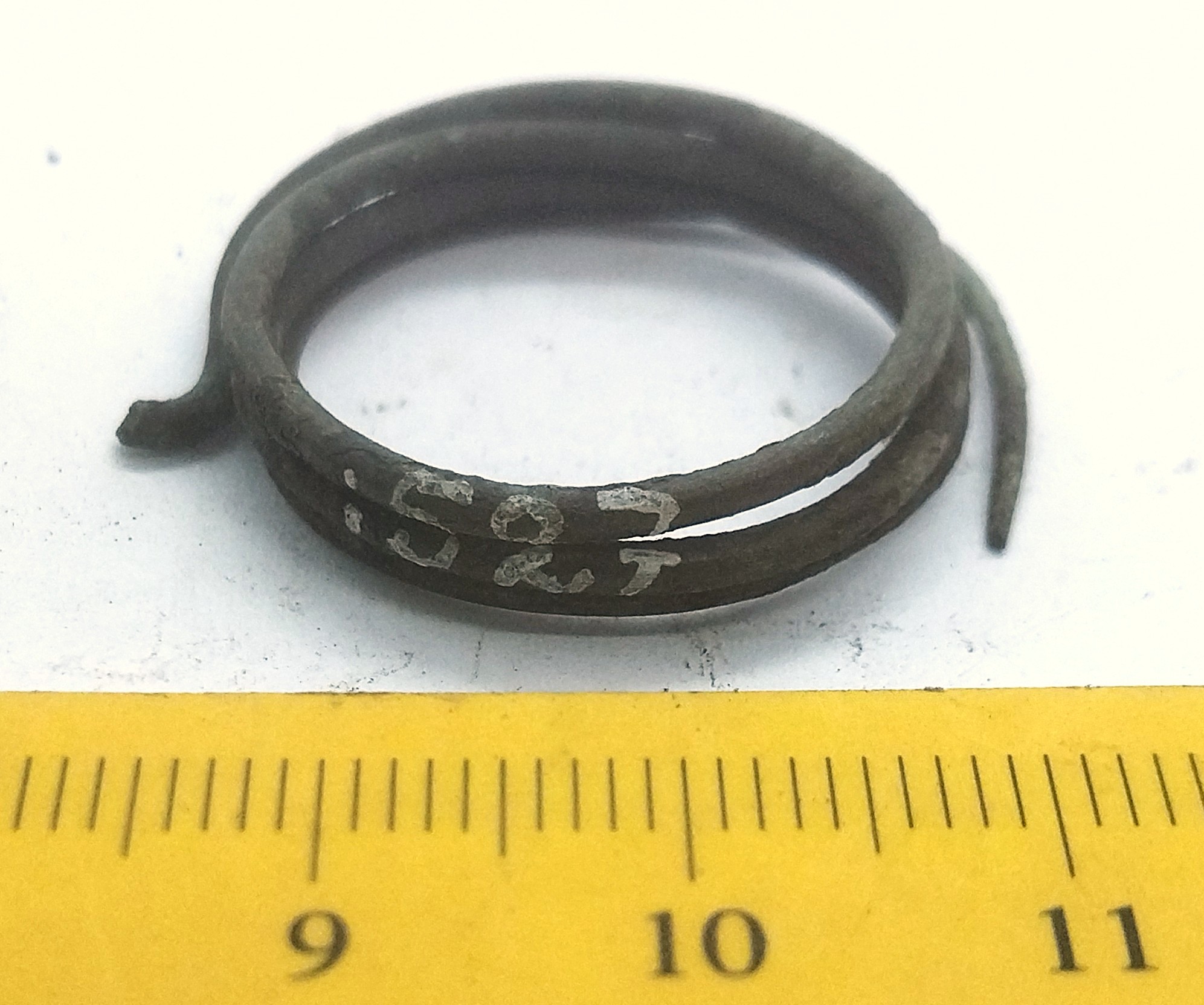 Spiral finger-ring, copper alloy. Spiral finger-rings were worn in a wide area on the eastern coast of the Baltic Sea and the north-western part of Russia. In some cases, it can be difficult to differentiate between simple spiral finger-rings and larger bronze spirals used for other purposes (Mägi 2002, 108).