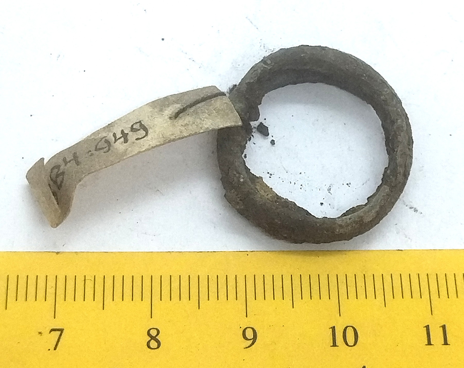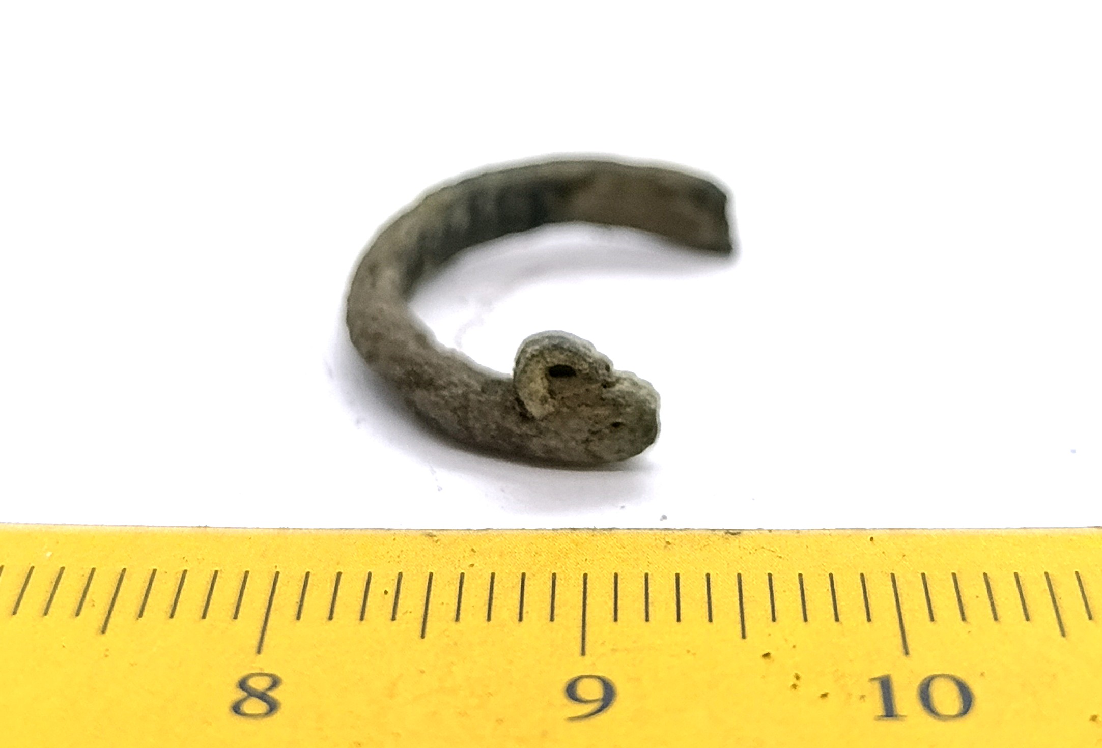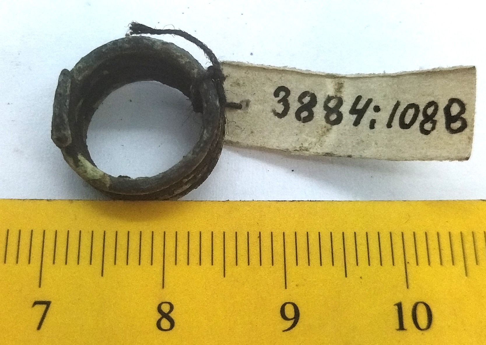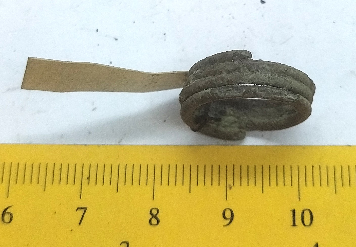 Finger-ring, copper alloy. Evenly wide, with overlapping ends.