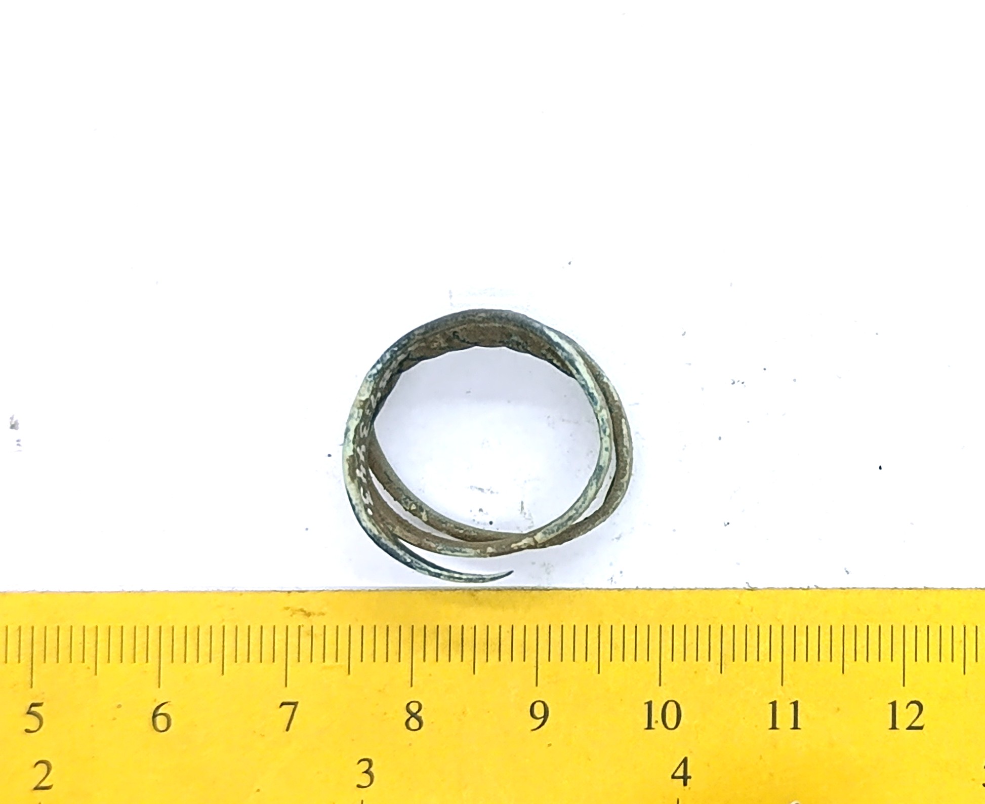 Spiral finger-ring, copper alloy. Such rings are also found in the archaeological material of Latvia. In Estonia, they are dated to the second half of the 13th century and the early 14th century (Valk 1991, 186).