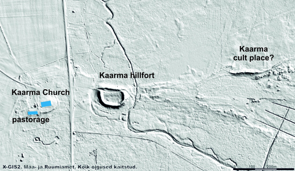 Kaarma parish lay at the heart of the Diocese of Saare-Lääne, which has led to the assumption that this was the ecclesiastical centre of Saaremaa. The church’s patron saints, the apostles Peter and Paul, also indicate its importance—cathedrals were often dedicated to them, though they can also be associated with fortifications. The church stands only 220 metres from Kaarma hillfort, and at least by the late 13th century both structures must have been in use simultaneously. This was likely an old centre with earlier cultic significance — according to folklore, about 900 metres northeast of the church was one of Saaremaa’s most important sacred places, where human sacrifices were once made.