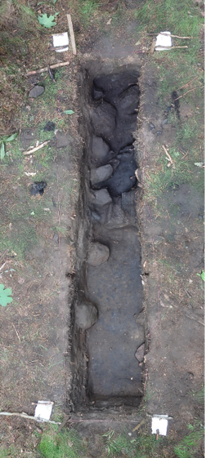 Small excavations at the hillfort were carried out in 2025. The aim of these was to study the lower area of the Kärla hillfort using a 3×4 metre excavation, to clarify the period of use of the stronghold and the nature of the cultural layer. The main research question was whether the investigated area had been overbuilt during the hillfort’s period of use. Additionally, a 0.5×3.5 metre trench was opened on top of the rampart to obtain a charcoal sample for dating the hillfort’s last fire and refining the end of its period of use.