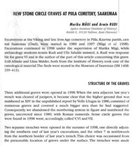 Mägi, M.; Rudi, A. (1999). New Stone Circle Graves at Piila Cemetery, Saaremaa. In: Archeological fieldwork in Estonia = Arheoloogilised välitööd Eestis 1998 (39−49). Tallinn: Muinsuskaitseamet.
