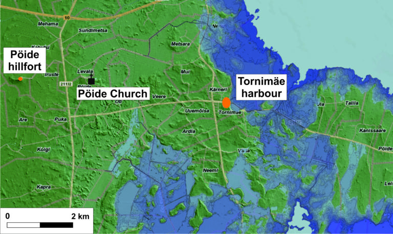 One of Saaremaa’s largest 7th-10th-century harbour sites was excavated at Tornimäe, 7 km eastward from the Pöide hill fort. Among other artefacts, pottery sherds identical to those found at Pöide have been uncovered there. This suggests that the same people were active in both the hill fort and the harbour. Additionally, a site with similar ceramics has been found in the village of Iruste, located next to the hill fort. Perhaps one of the most important lords of the region lived there on a daily basis.