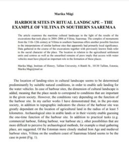 Mägi, M. (2009). Harbour sites in ritual landscape – the example of Viltina in southern Saaremaa. Estonian Journal of Archaeology, 13: 2, 110−131.